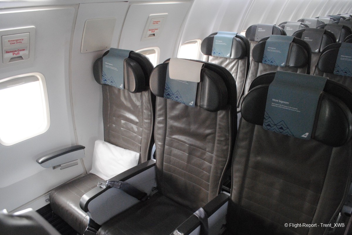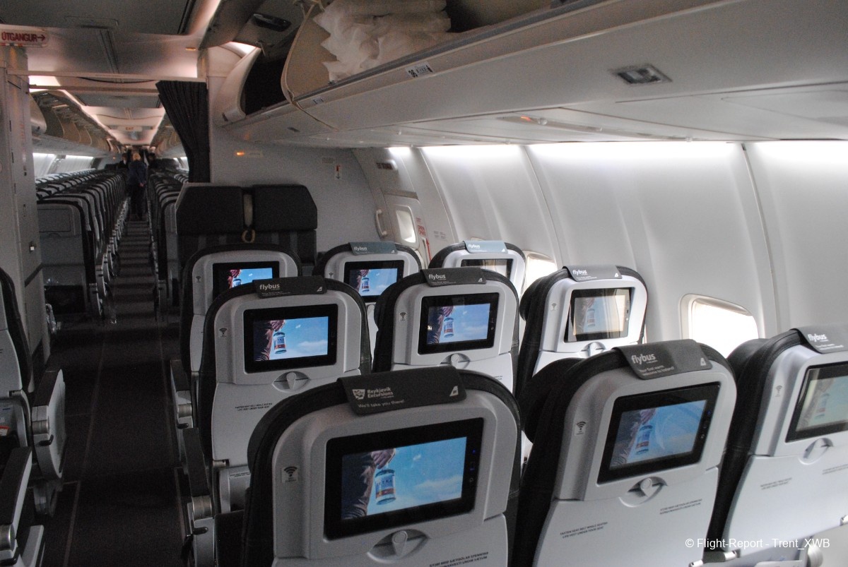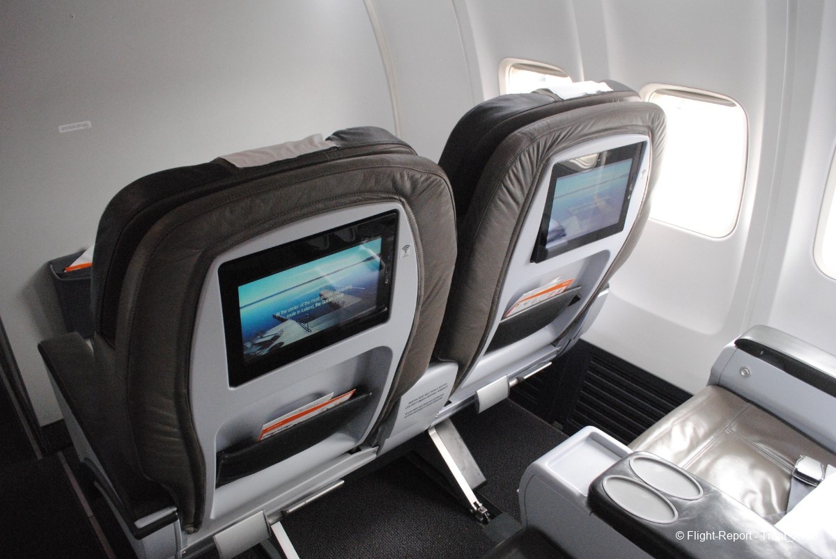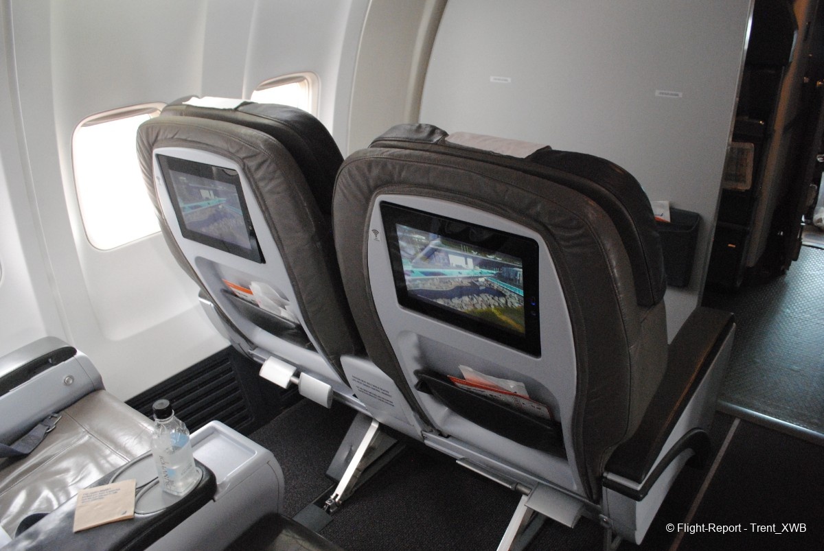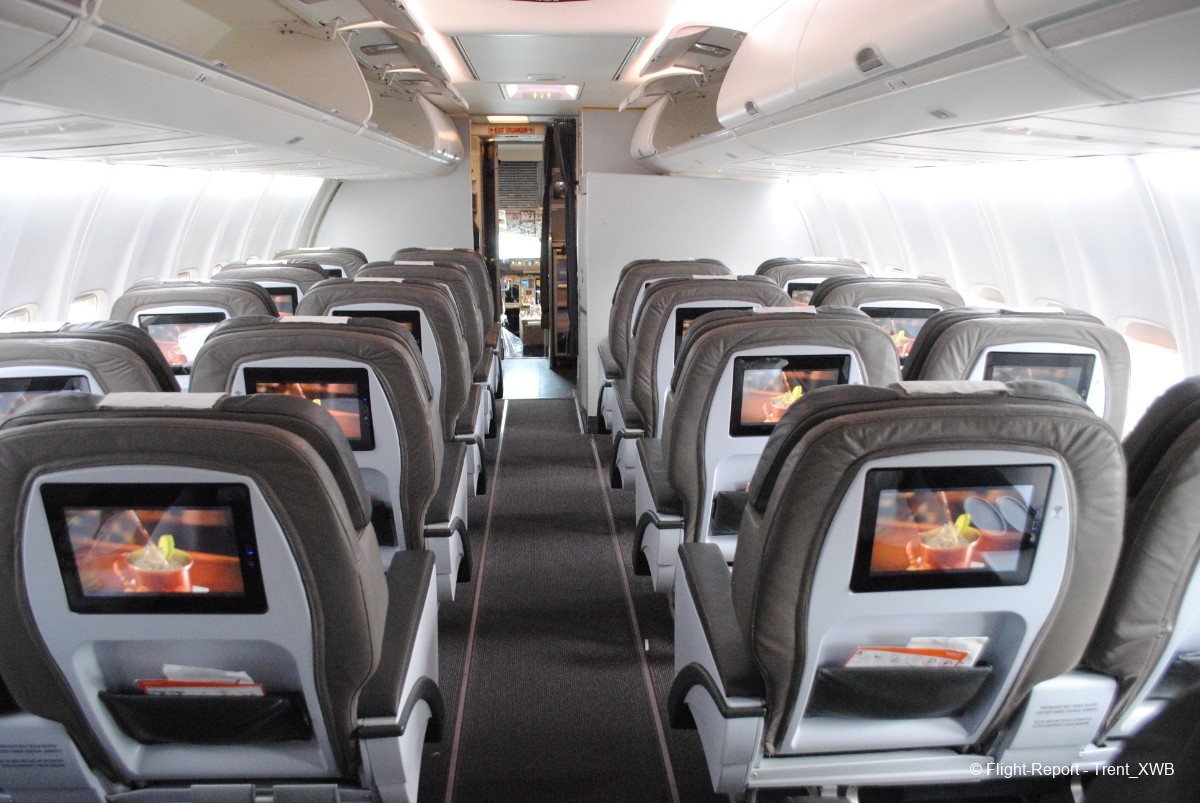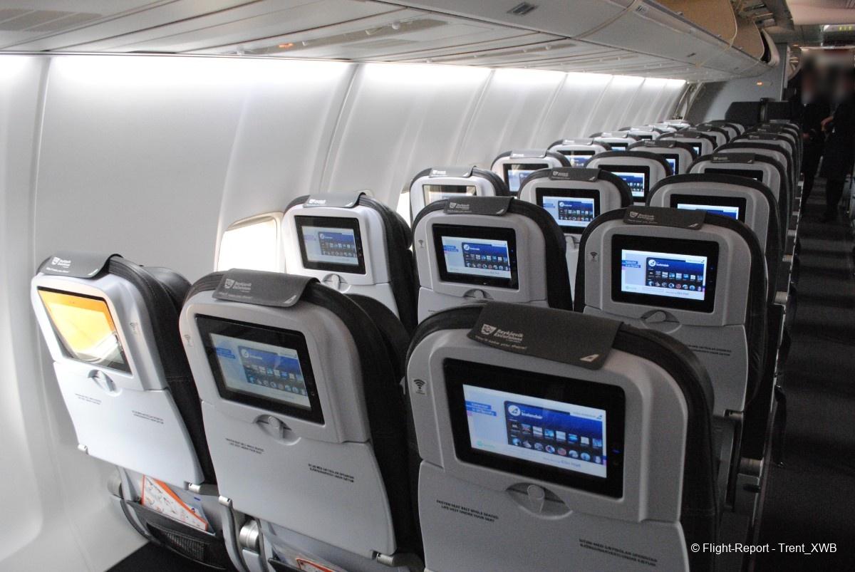 The economy class consists of 203 seats in 3-3 layout, distributed between 2 cabins: the very long front one between 2L/R and 3L/R doors and the smaller rear one between 3L/R and 4L/R doors.