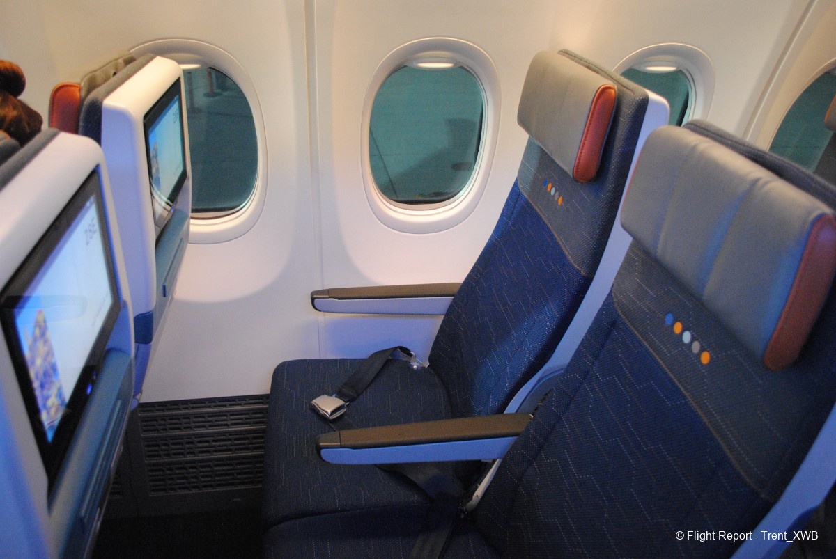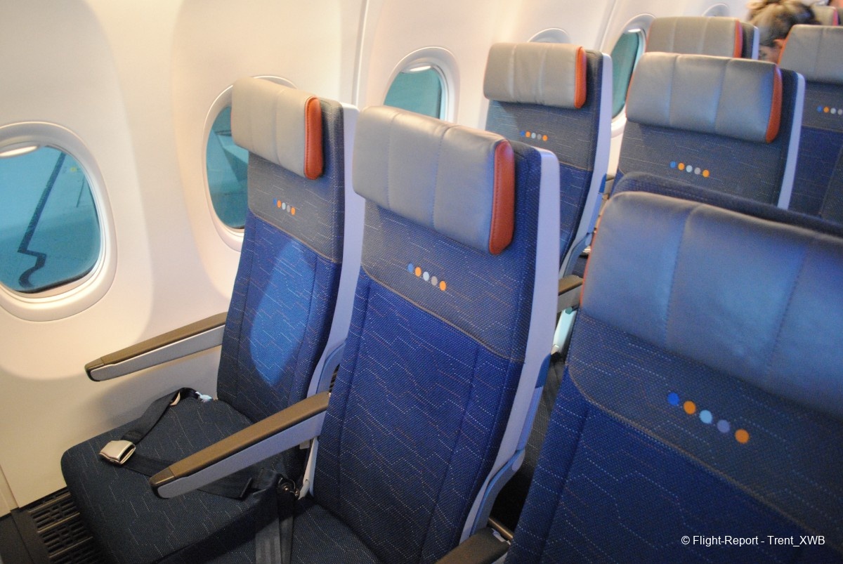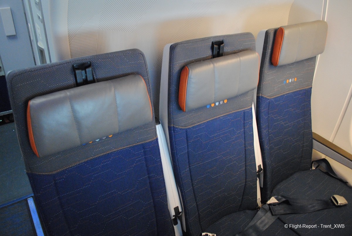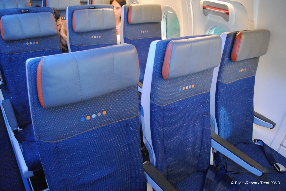 The economy seat model is Recaro CL3710, which I deeply hate on longhaul flights. Though, on mid-haul flights like this one (3 hrs) it's a different story. On the flights of this length CL3710 is tolerable and back and ass don't have time to start to die.