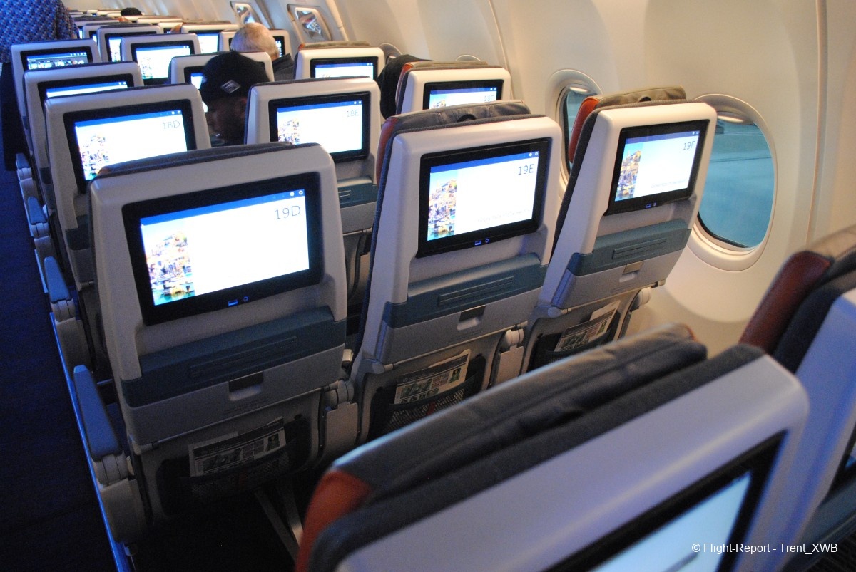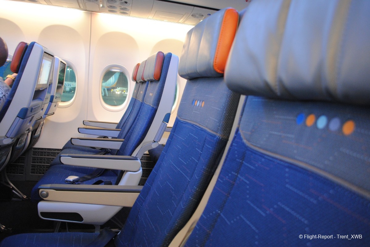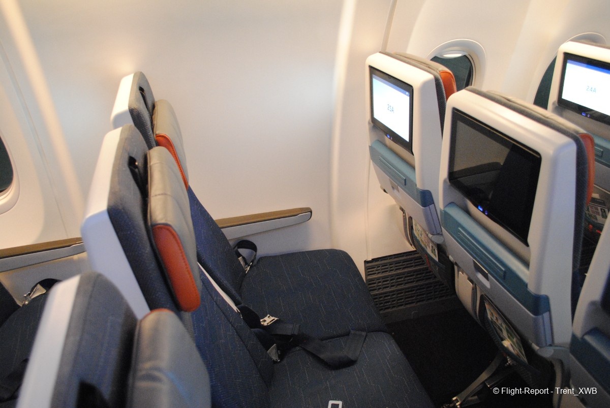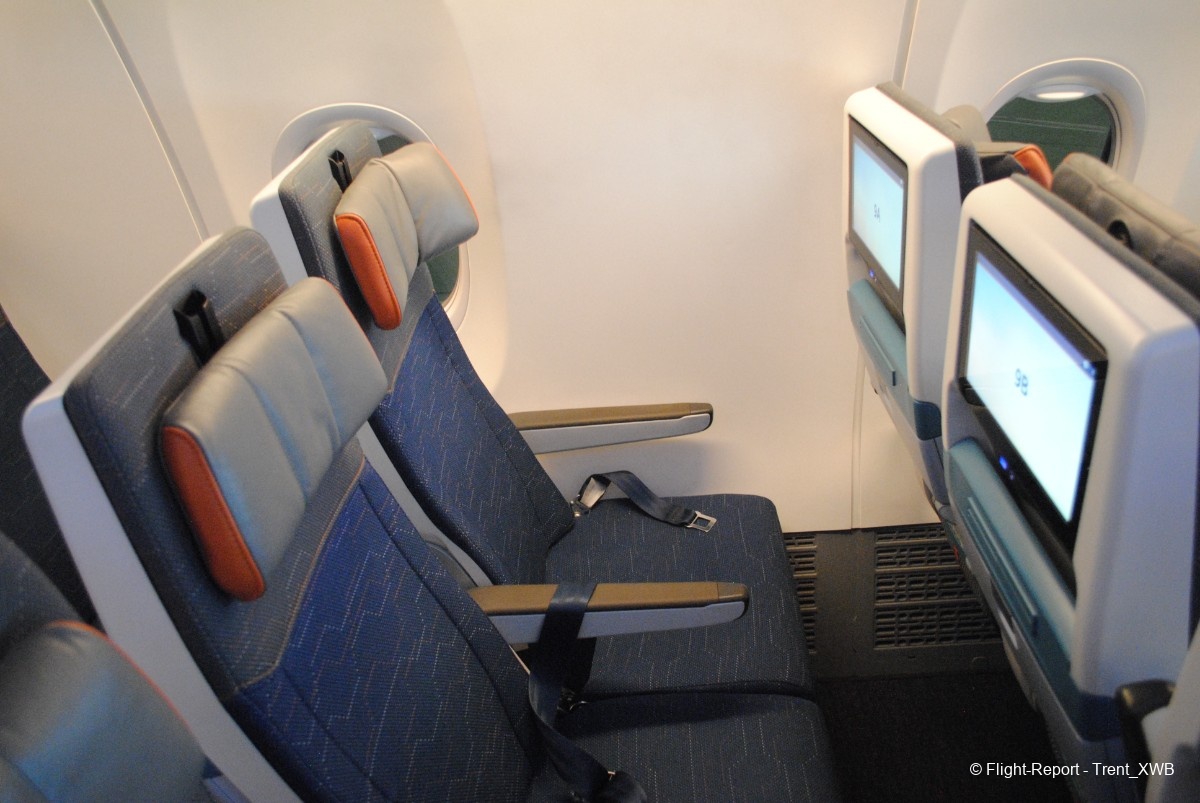 The economy seat model is Recaro CL3710, which I deeply hate on longhaul flights. Though, on mid-haul flights like this one (3 hrs) it's a different story. On the flights of this length CL3710 is tolerable and back and ass don't have time to start to die.