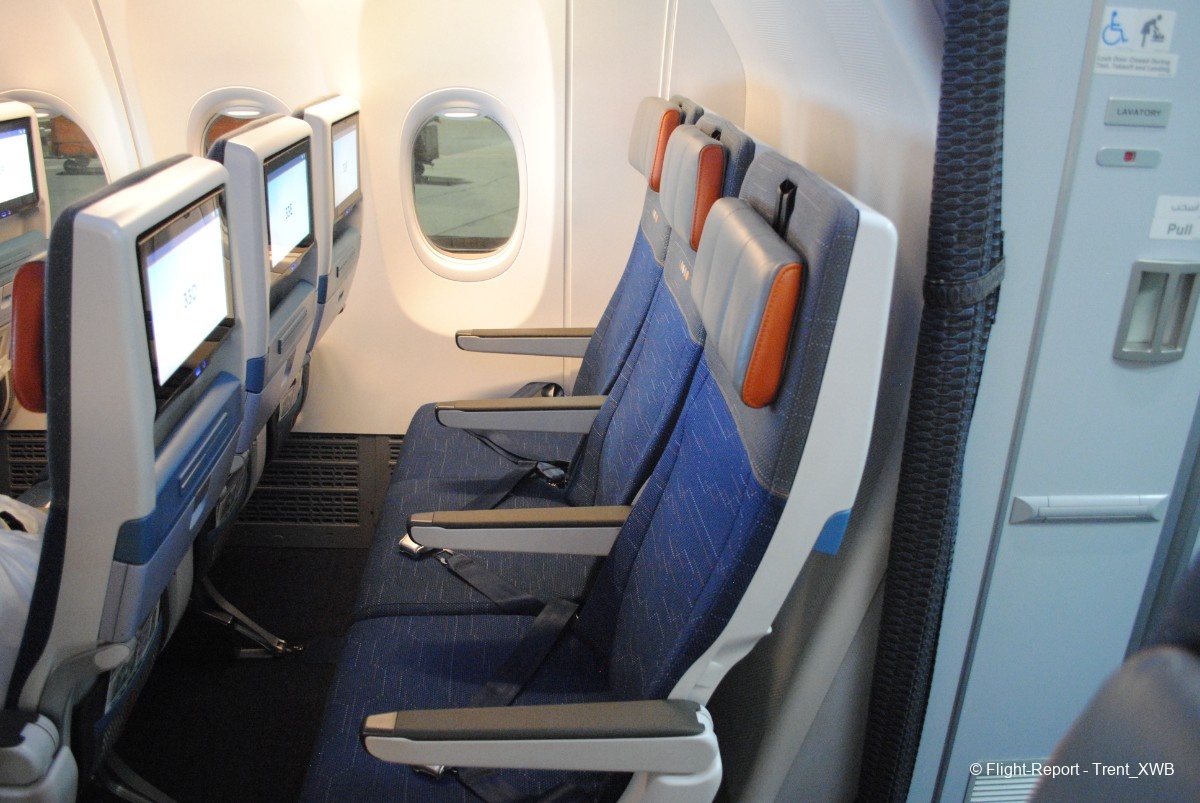 The economy cabin consists of 156 seats in 3-3 layout with row 6 being bulkhead one and rows 15 and 16 being overwind exit ones.