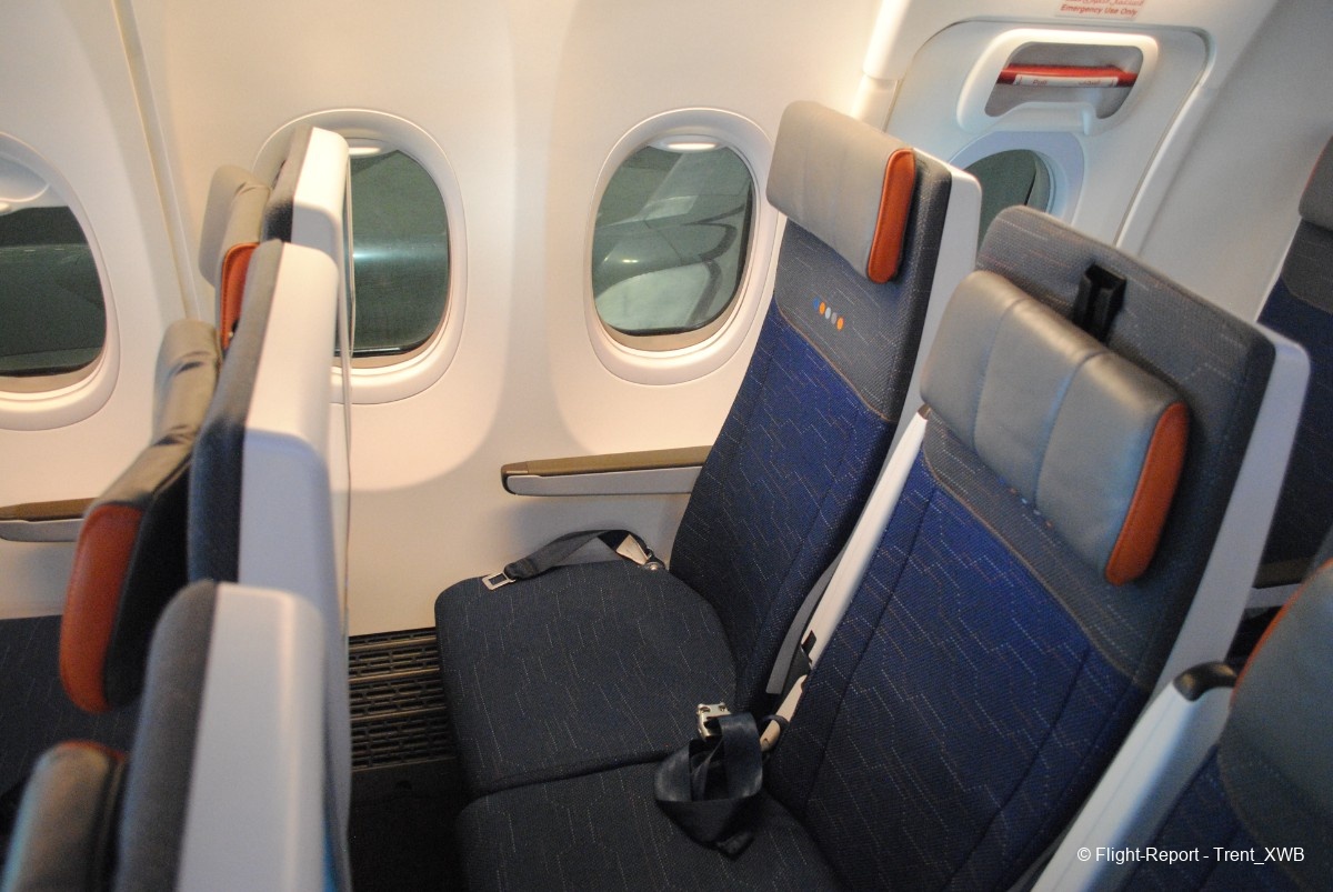 The business cabin consists of 16 lie-flat customized Thompson Aero Vantage seats in alternating 2-2 to 1-1 layout. Thus, 4 seats (2B/E and 4B/E) are of "throne" type and are the best seats in this cabin. FZ definitely has the best business class among all the 7M9 operators: only Copa also has lie-flats in its 7M9s, but in 2-2 layout and with simplier seats.