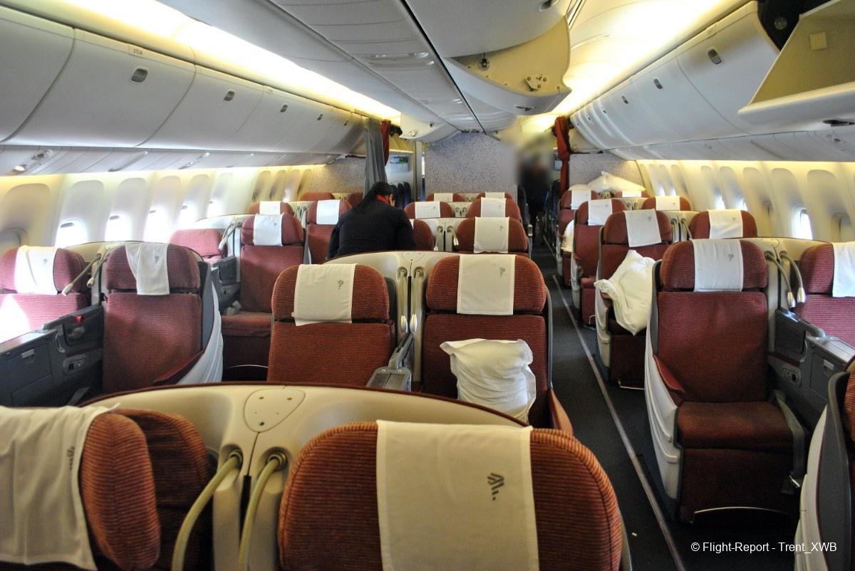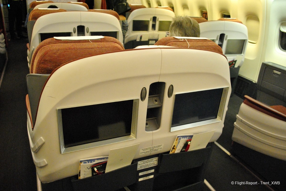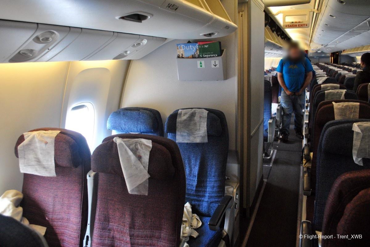 The business cabin had 30 lie-flat seats in 2-2-2 layout (quite tight for 767 cabin width, some airlines had more spacious 2-1-2 or even 1-2-1 layouts).