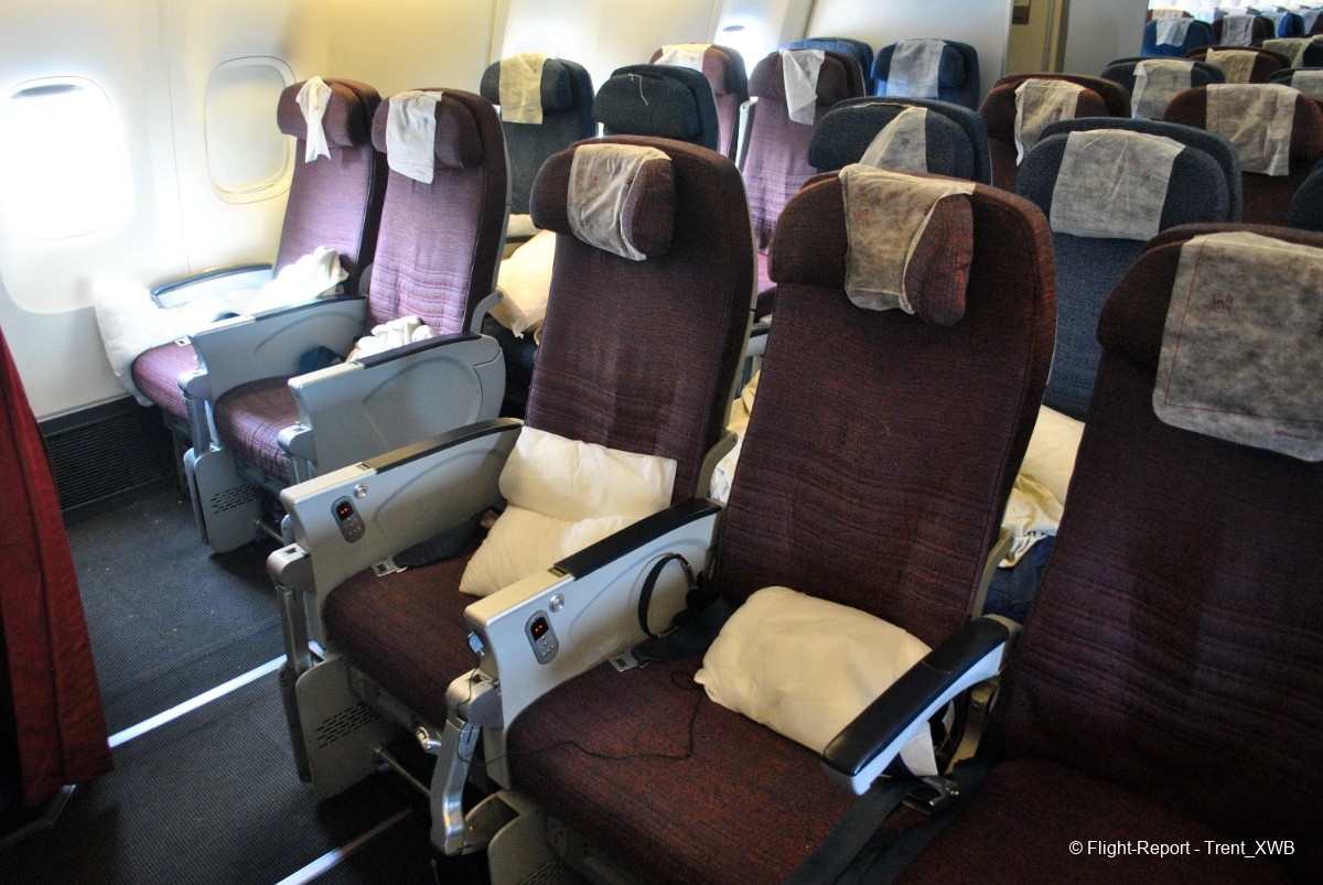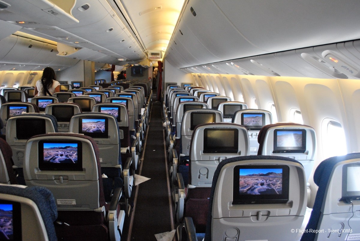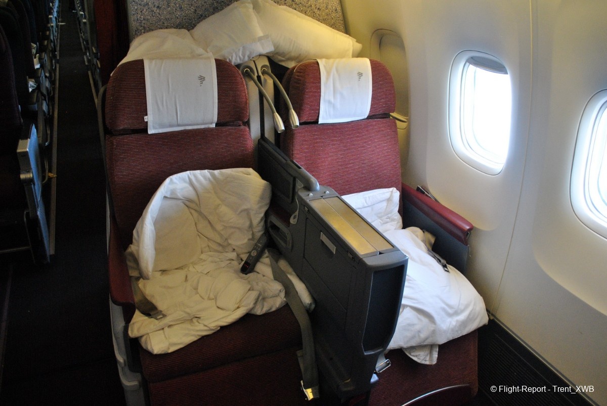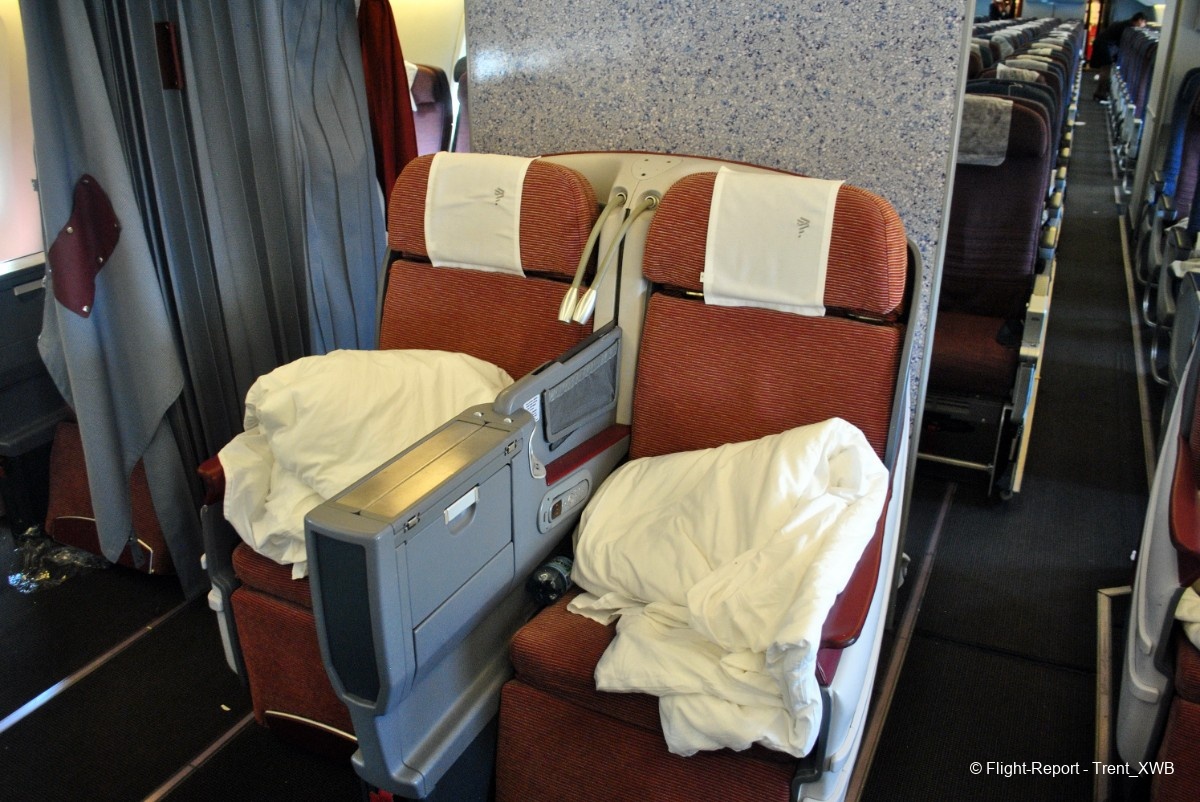 The business cabin had 30 lie-flat seats in 2-2-2 layout (quite tight for 767 cabin width, some airlines had more spacious 2-1-2 or even 1-2-1 layouts).