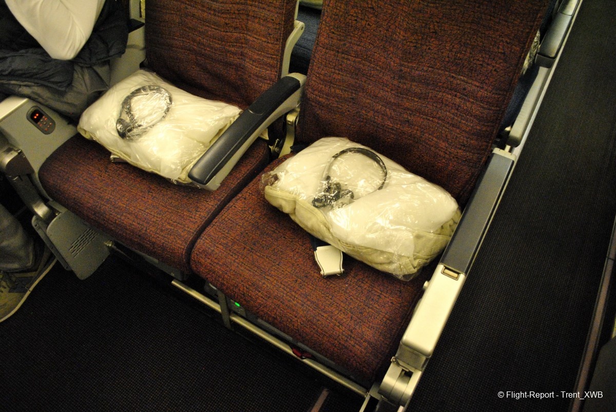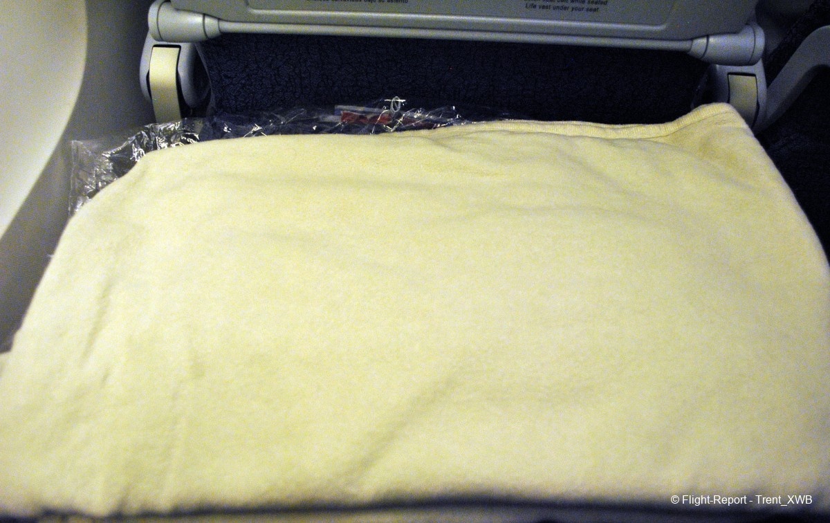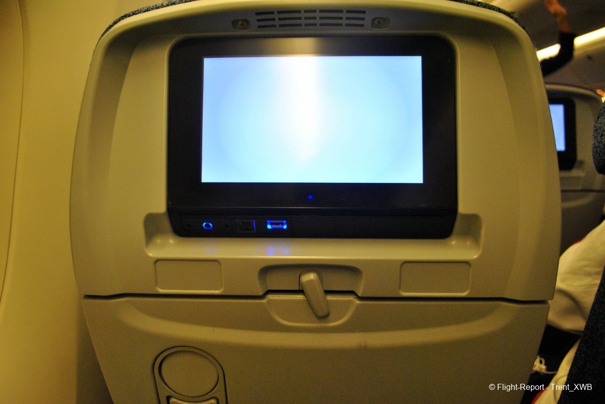 The seat had adjustable headrest, quite modern IFE with hard-mounted screen and USB port, tray table with cup holders, seat pocket and universal power socket underseat. Waiting on the seat were pillow, blanket and headset.
