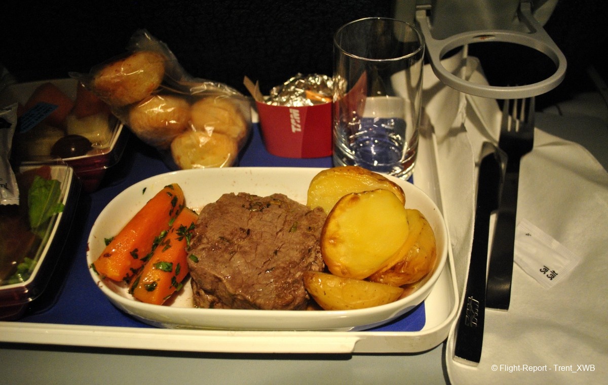 Before the flight I chose gluten-free meal on LATAM website. First GFML turned to be an excellent steak with metallic cutlery and wine in glass. Very high level! The crew were very friendly, as always on Brazilian airlines flights.