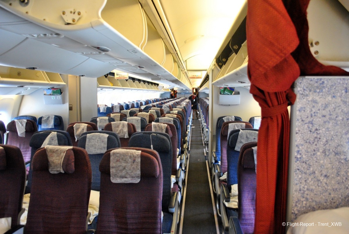 The economy cabin constisted of 191 seats in comfortable 2-3-2 layout (with just 1 middle seat per row). It will be shown in details further. At the very back of the cabin there were crew rest seats (B763 don't have crew rest bunks), shown on the last photo in this gallery.