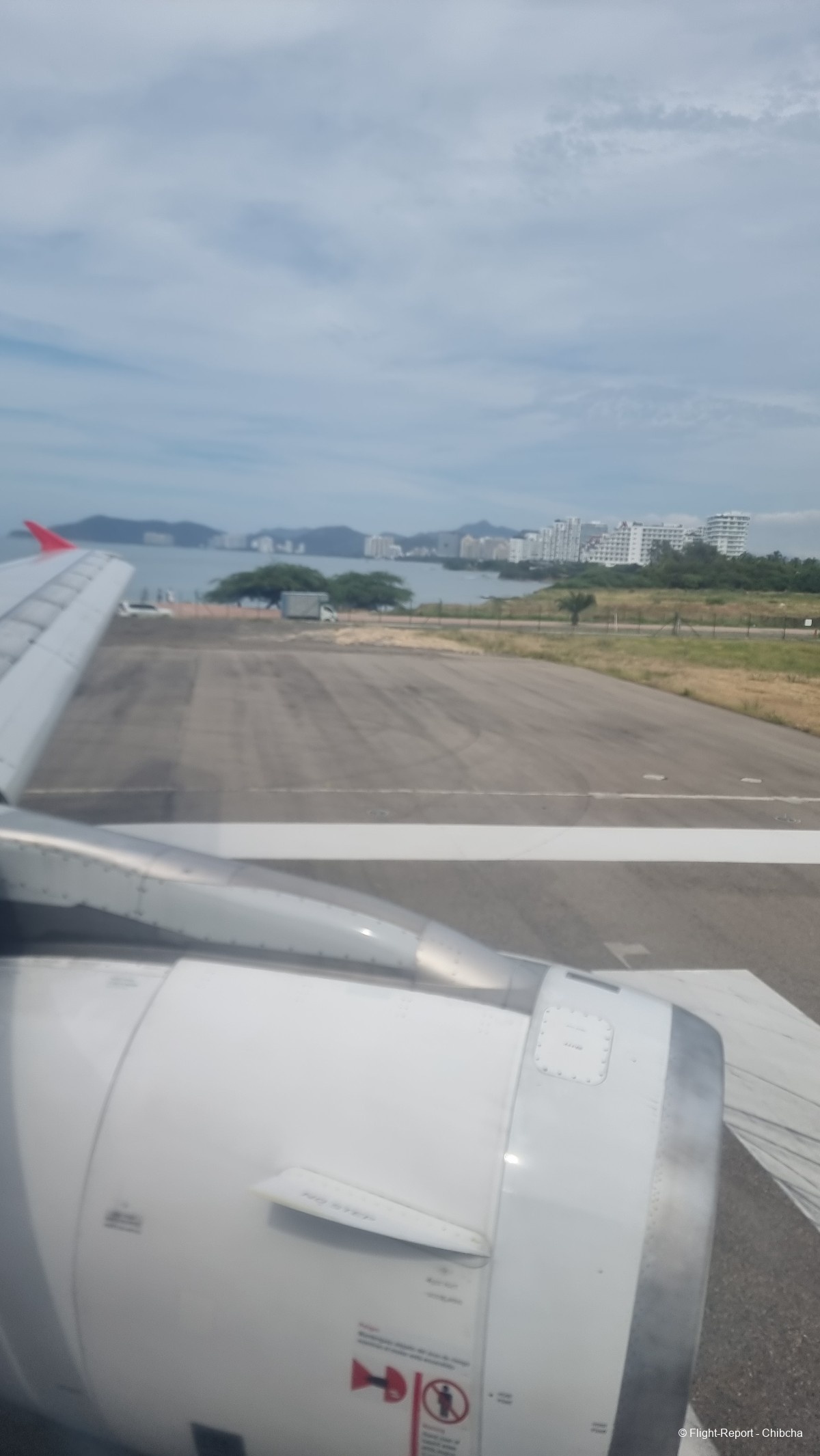 Our flight was full, and having everyone seated took its time. We then taxied to position ourselves to the south. SMR doesn't have parallel taxiways so this is done on the runway and requires backtracking.