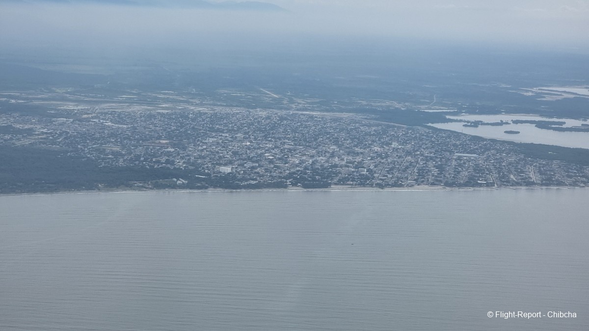 Since we took off towards the south, my view was to the Sierra Nevada de Santa Marta (the tallest mountain in Colombia), with a short glimpse of the Caribbean and then the town of Cienaga and the "Zona Bananera".