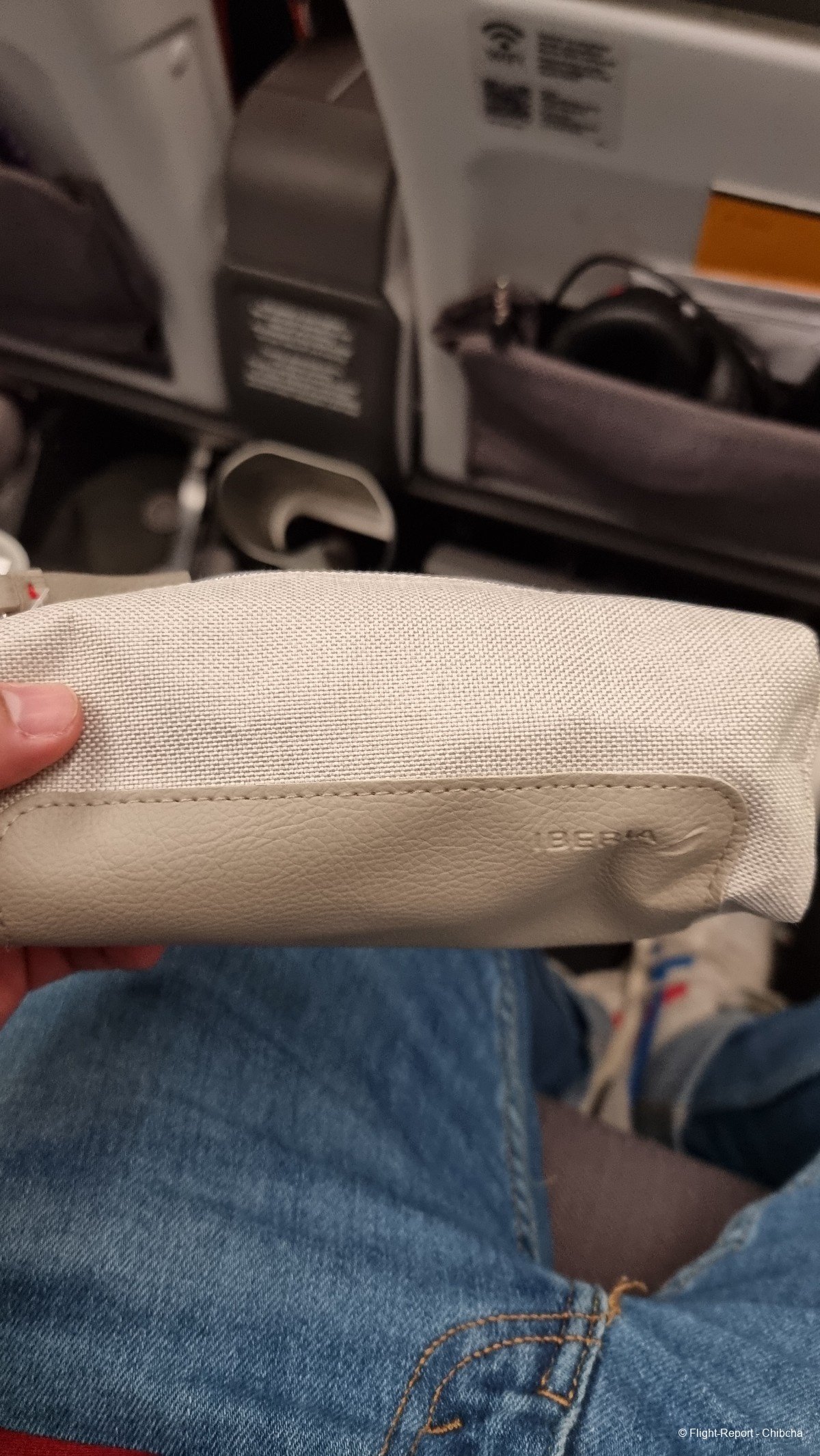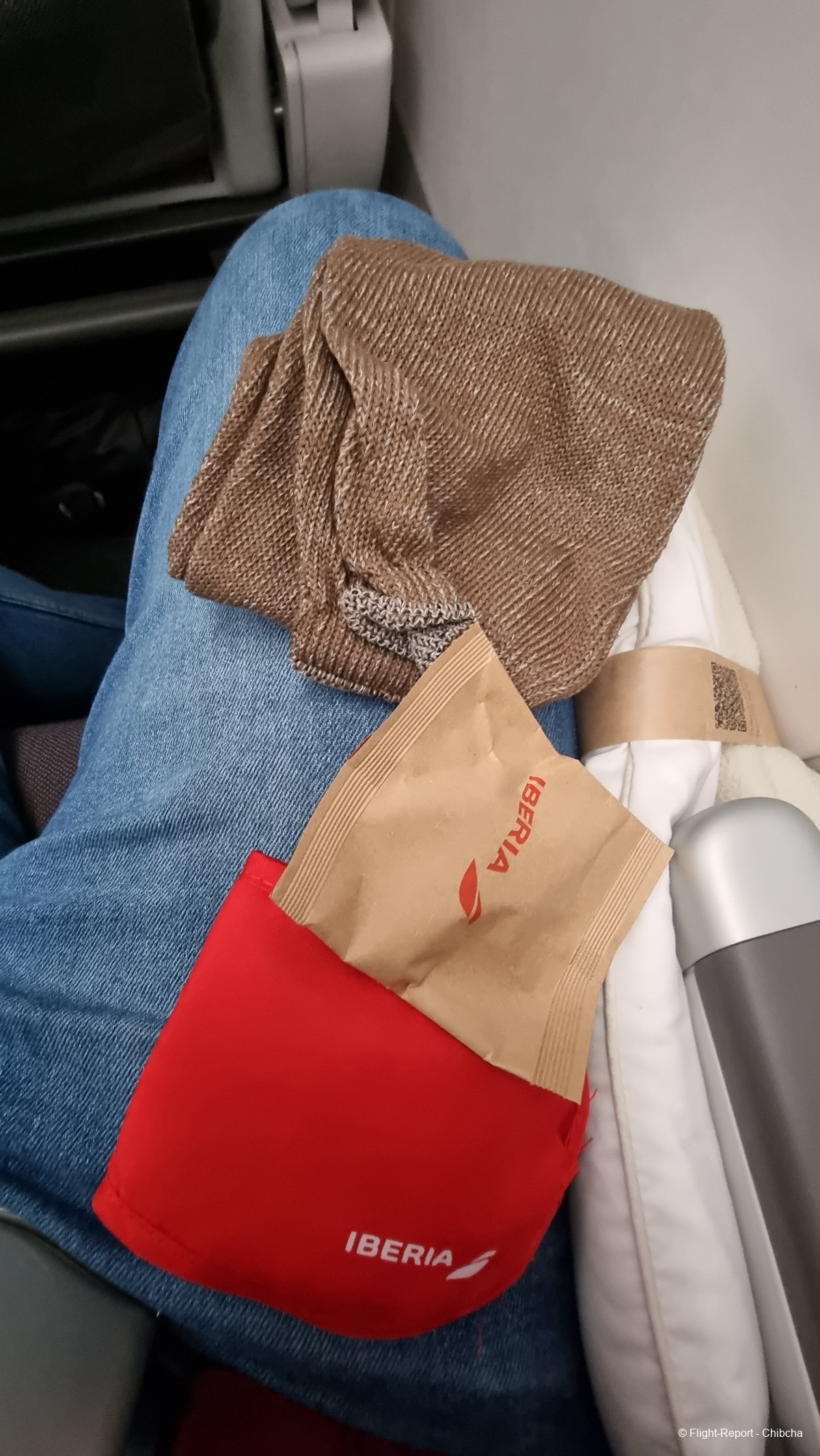 The seat itself is spacious and quite confortable for the ride across the Atlantic. Nice plush pillows, and warm and soft blankets were waiting for us. IB also provides us with "better" headphones, which are not amazing, but they do the job.