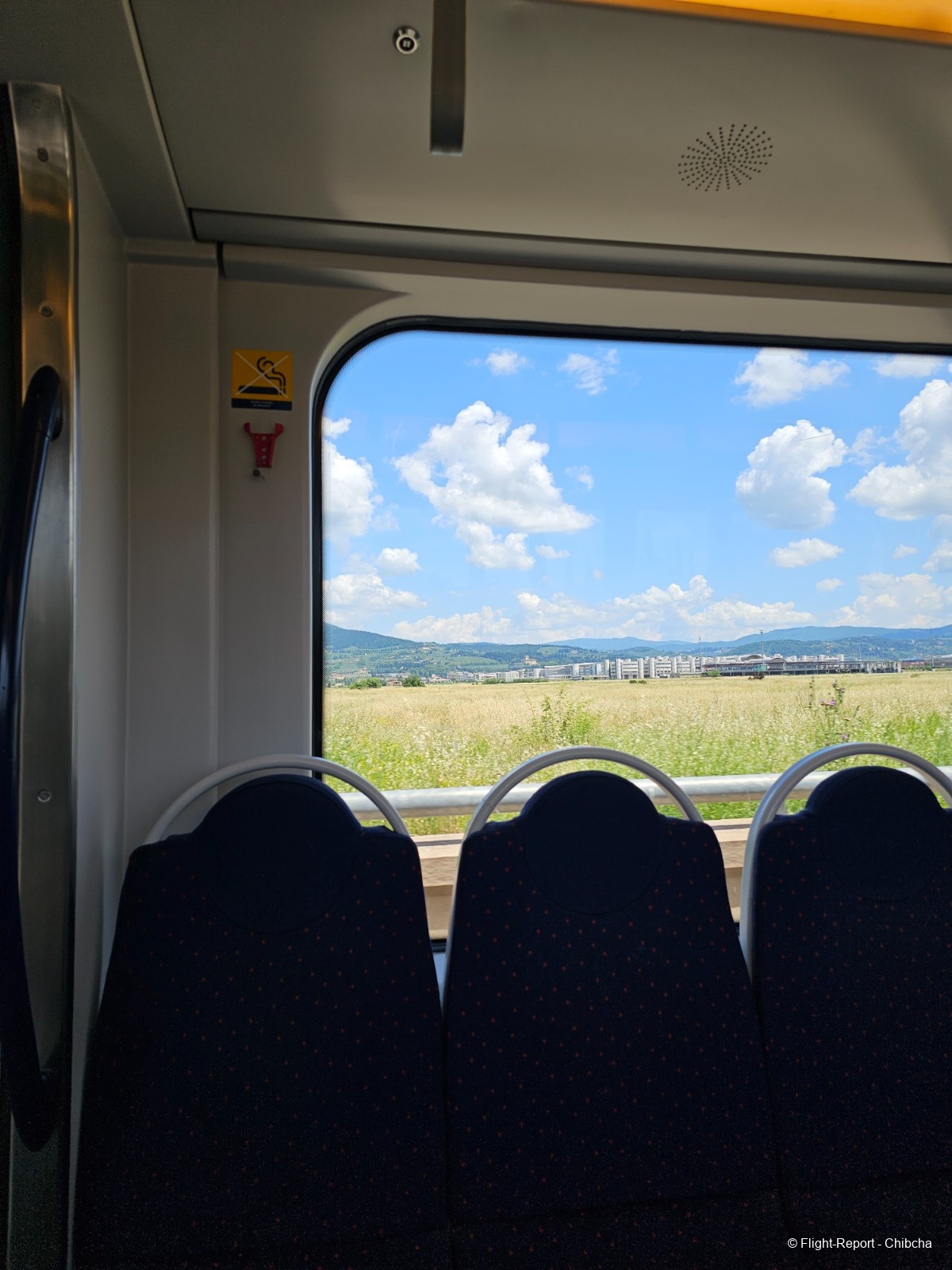 FLR is conveniently connected by a Tram to the city centre. We had spent the weekend in Arezzo, and because of train schedules (and trenitalia's famous reliability) I had chosen an early train to Florence so we had wide margins to avoid any stress for delays. But everything went smoothly and now the plan was to see if we could get on an earlier flight to Rome and wait for our flight to Madrid in FCO's new lounge.
