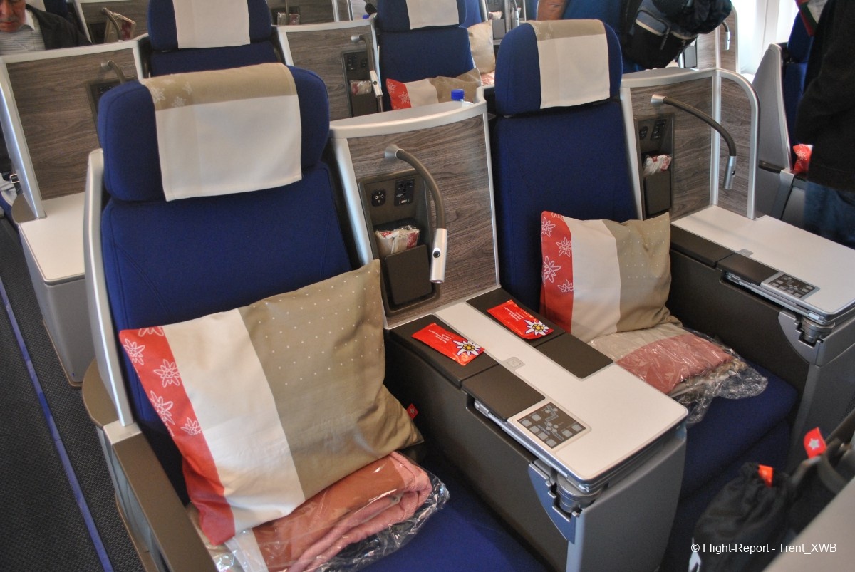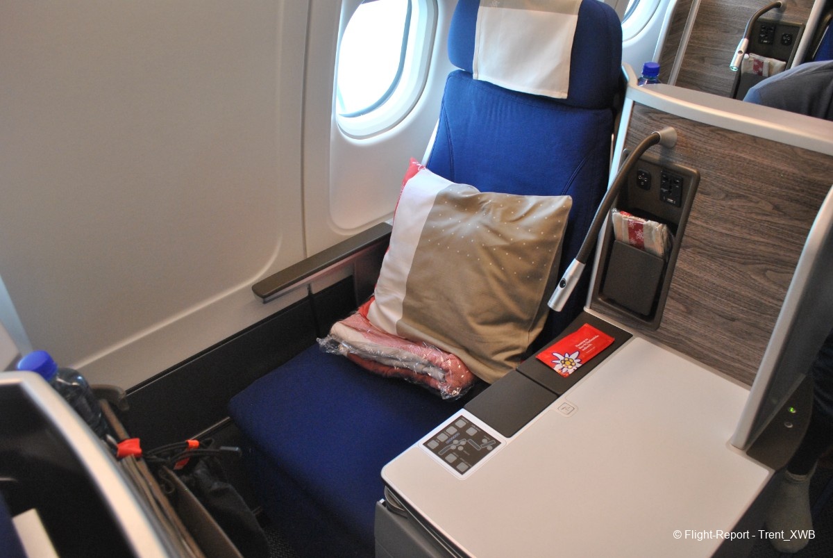 Here is the duo block 38JK, where I'll be sitting, unfortunately, near the aisle. The economy seat model is Recaro CL3710 (only if you get HB-JMC on your WK flight, you'll get another - Swiss-ordered - seat model, which is way better). It was my first time flying in these seats and I was yet to discover how I will hate these seats after the flight! When I sat down, I felt that something was very wrong: the seat was extremely hard, tight and uncomfortable. Maybe, the aisle seat was not that bad considering possibility to stand up any time without bothering the neighbour…