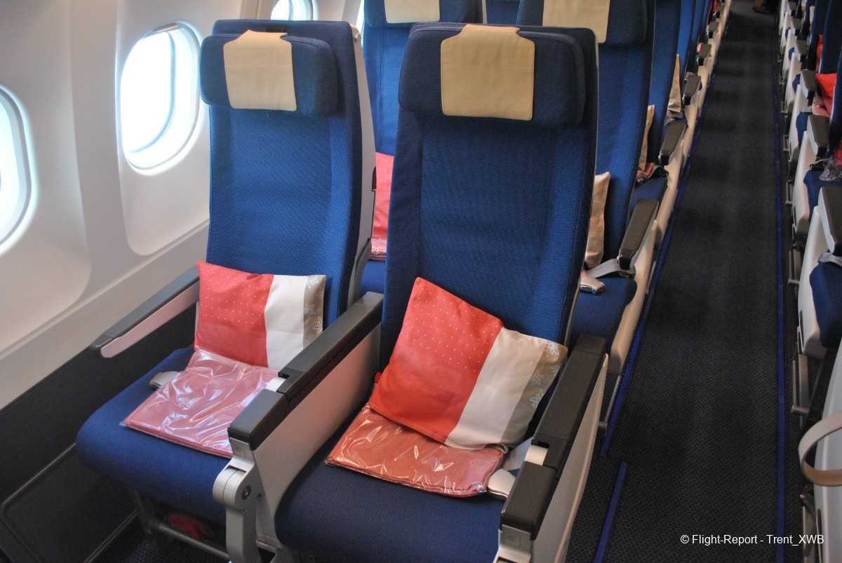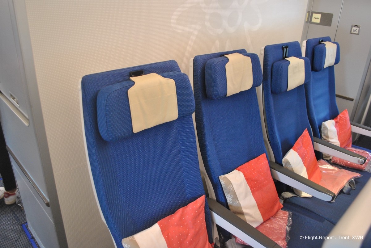 The seatwidth is miserable 17.0". It seems like somebody (WK) is ignoring Airbus's recomendations about the seatwidth and just wasting the cabin width into the aisles. WTF, a 2-4-2 layout in A300-desdendant cabin with the seatwidth as in 3-4-3 B777 and even less than in 3-3-3 Dreamliner?! Little then I knew that narrow seatwidth is rather norm in A340s/A330s with ancient pre-2004 interiors…