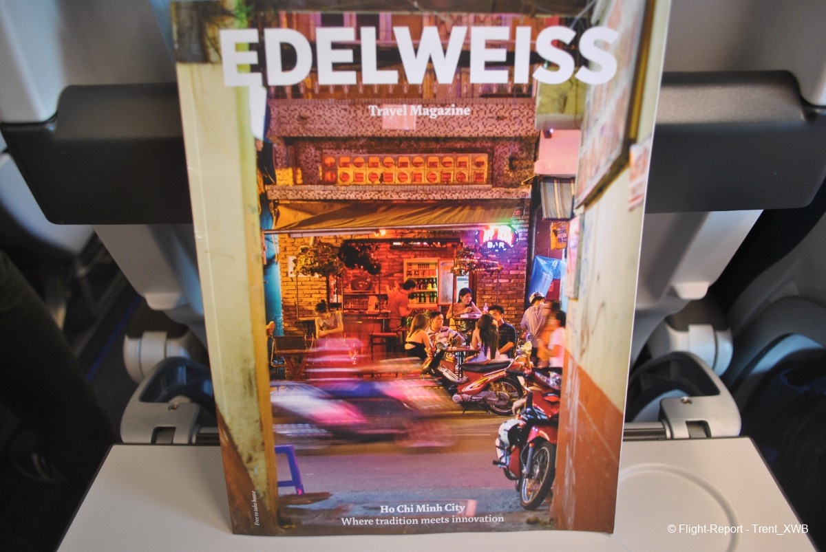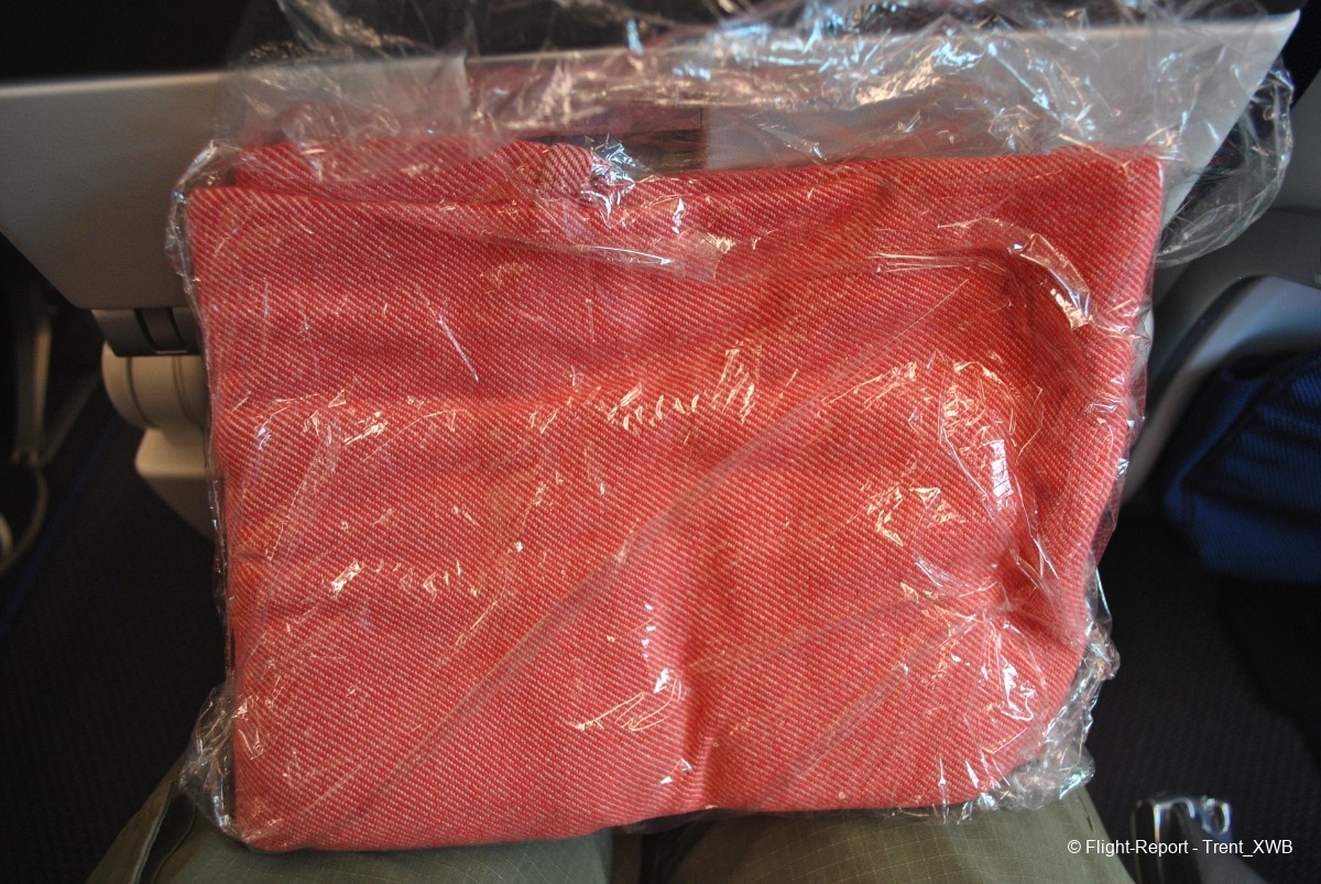 The seat has adjustable headrest, quite good IFE with adjustable angle of the screen and good selection of the content, bifold tray table, hard (below the screen) and soft (under the table) seat pockets. Waiting on the seat were pillow and blanket. Inside the soft pocket there are safety card, inflight magazine and duty-free magazine.