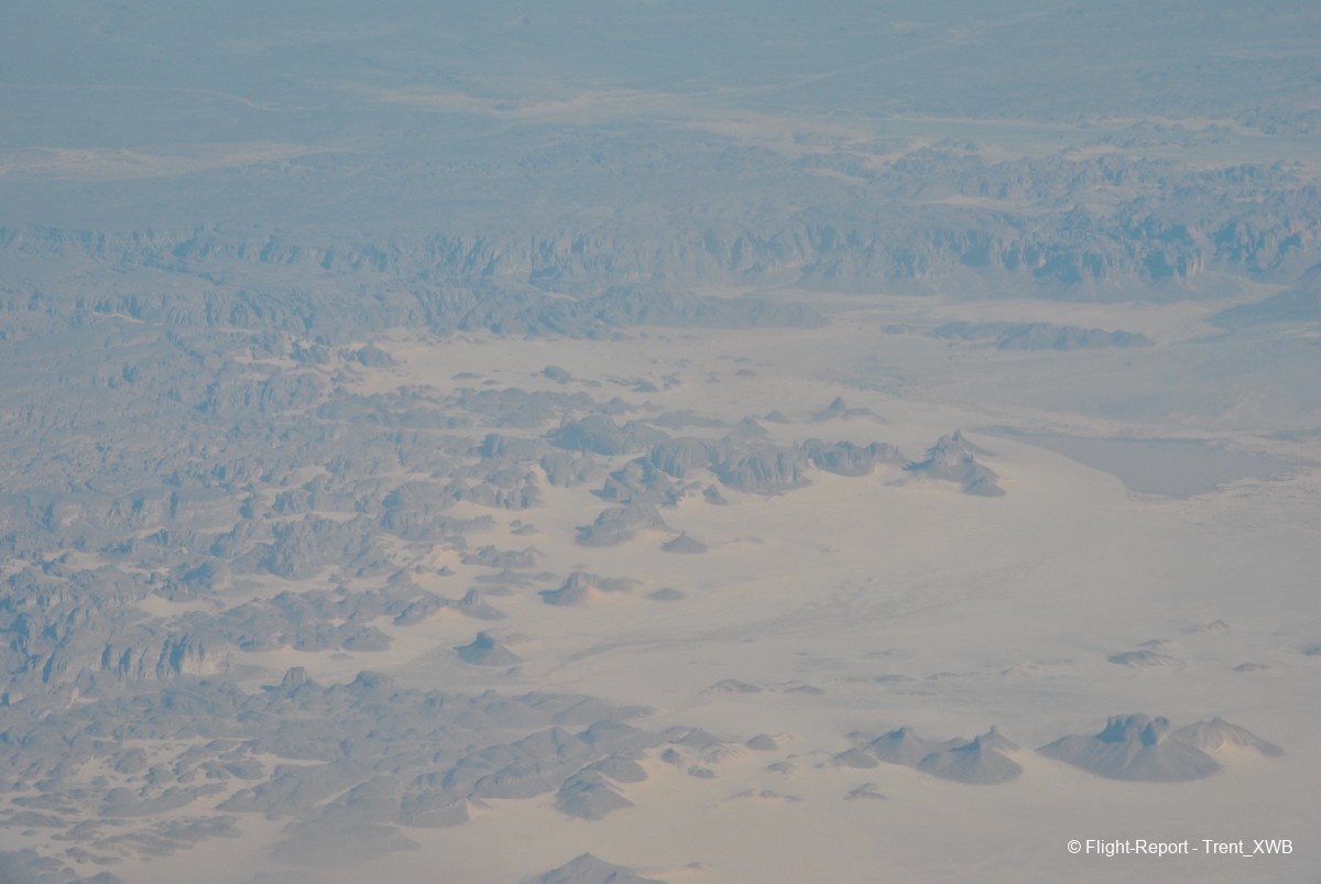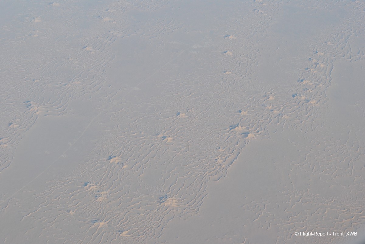 Meanwhile we're flying somewhere over Sahara desert with some awesome views (thankfully - this was the only time I said "thanks" to a Recaro seat! - my neighbour's back&ass also became Quadratisch and he stood up for a while, giving a possibility to have an unobstructed view from the window).