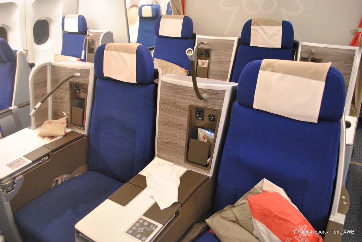 Comparing business cabins of WK A343s and ex-JJ A359s (which are replacing A343s), passengers of A359s has less convenient layout 2-2-2, but with very spacious seats.