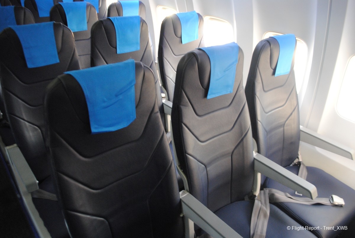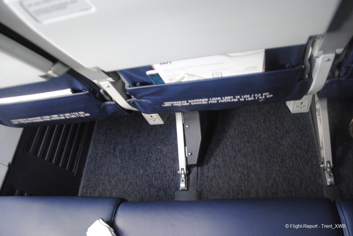 The economy seat was slimline (I cannot identify the model), with antimacassar, tray table, seat pocket and underseat universal power socket. Some seats had power boxes (not bothersome on short flights). The row pitch was OK.