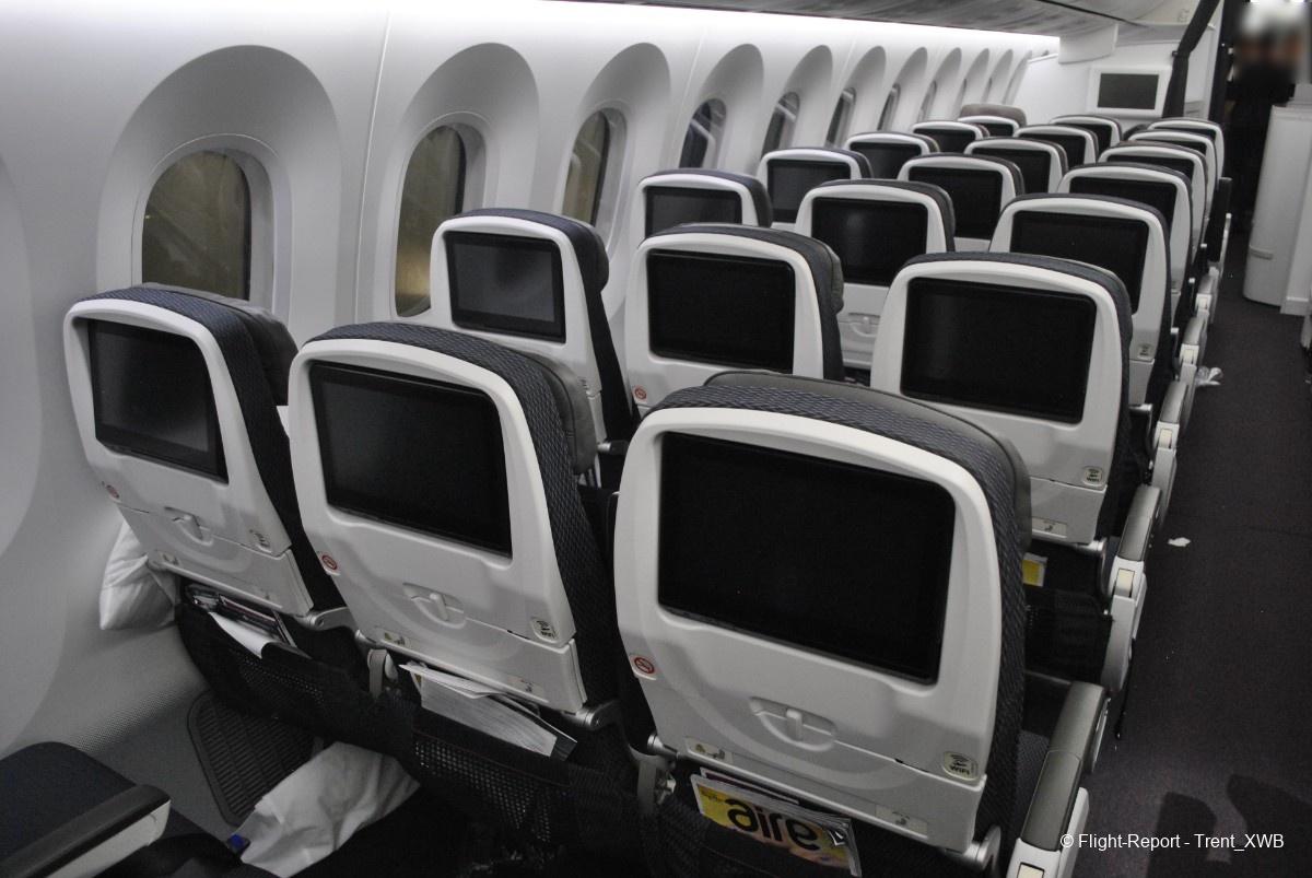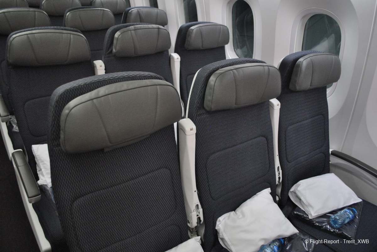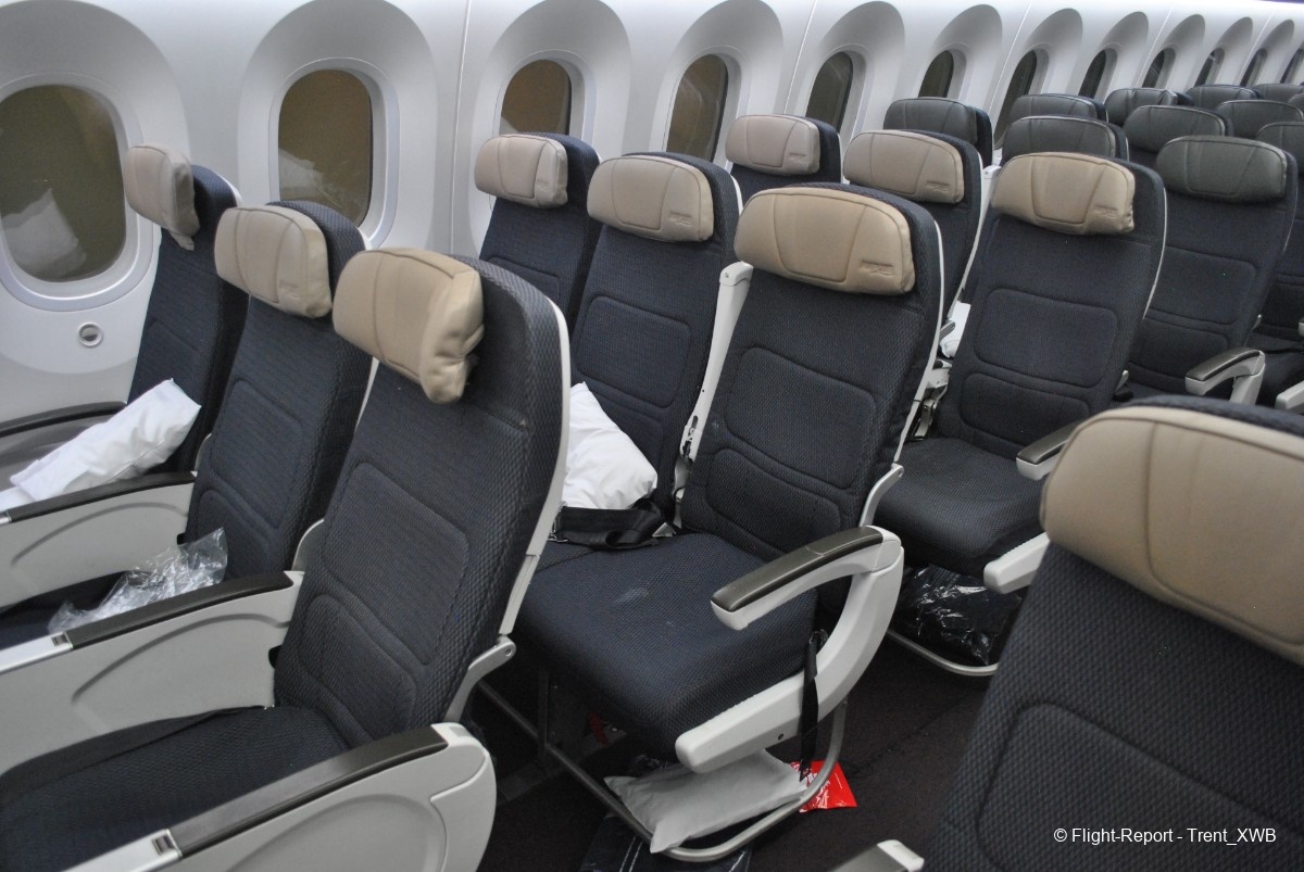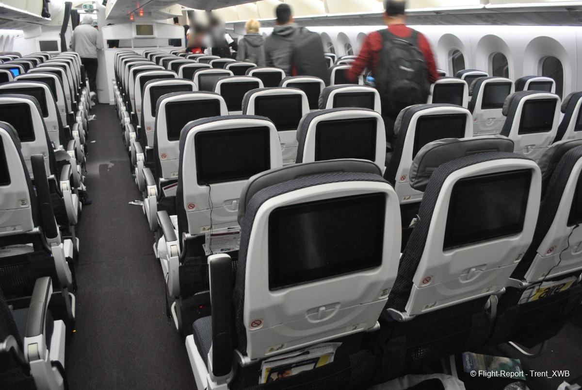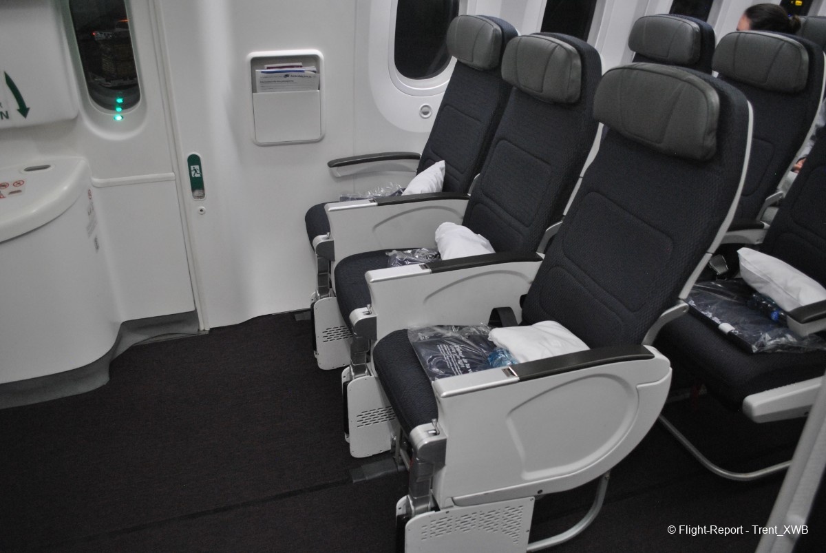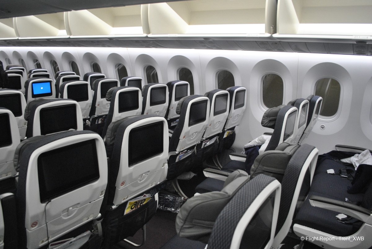 For the views of the front economy cabin I'll use photos made after AMS-MEX flight (on the identical B789s), so please don't mind some mess on the photos. Rows with beige headrests have increased pitch, rows with dark grey headrests are regular.