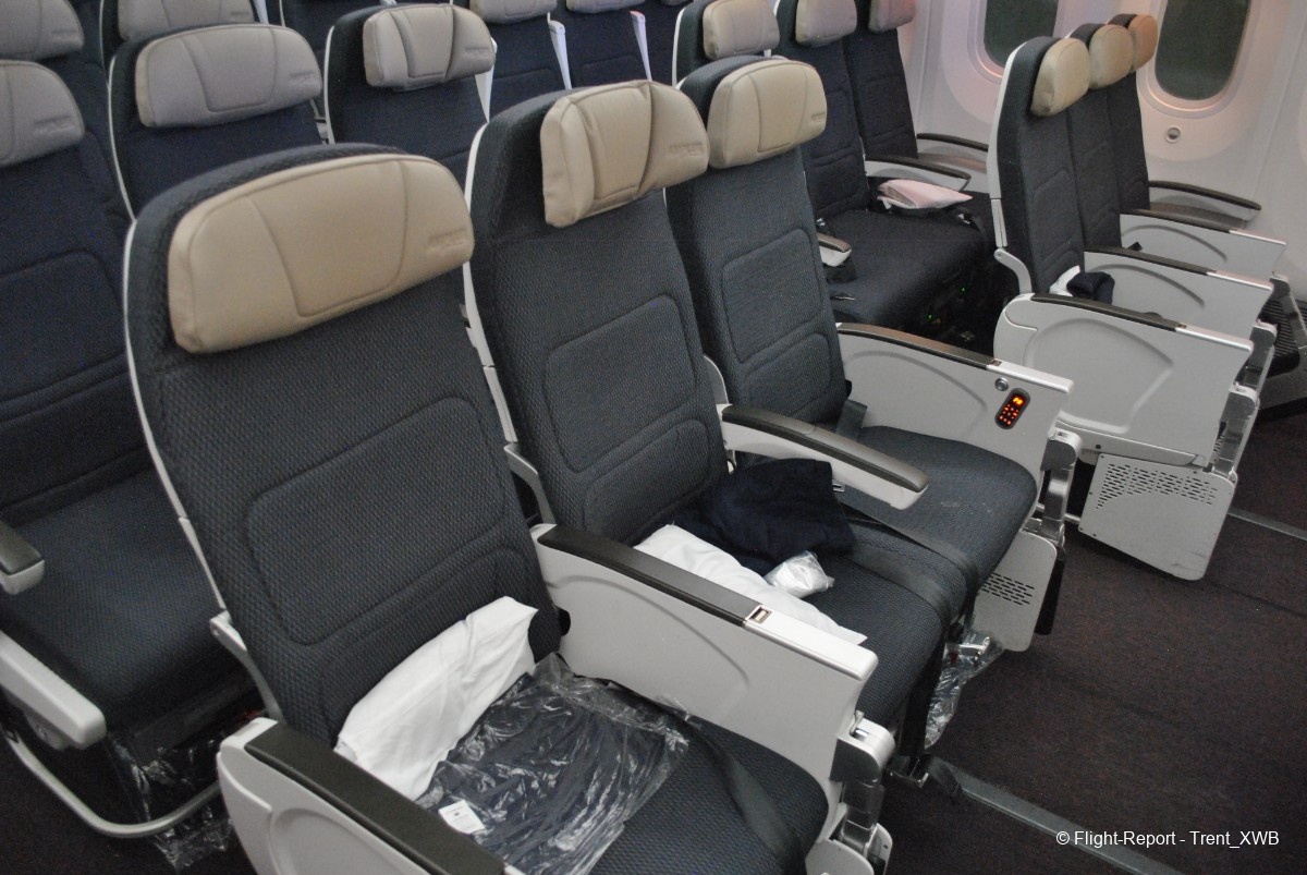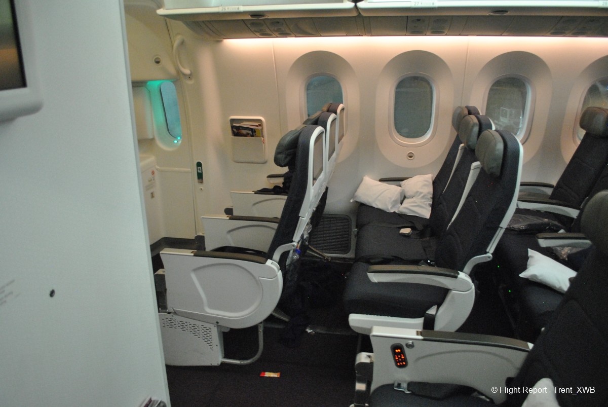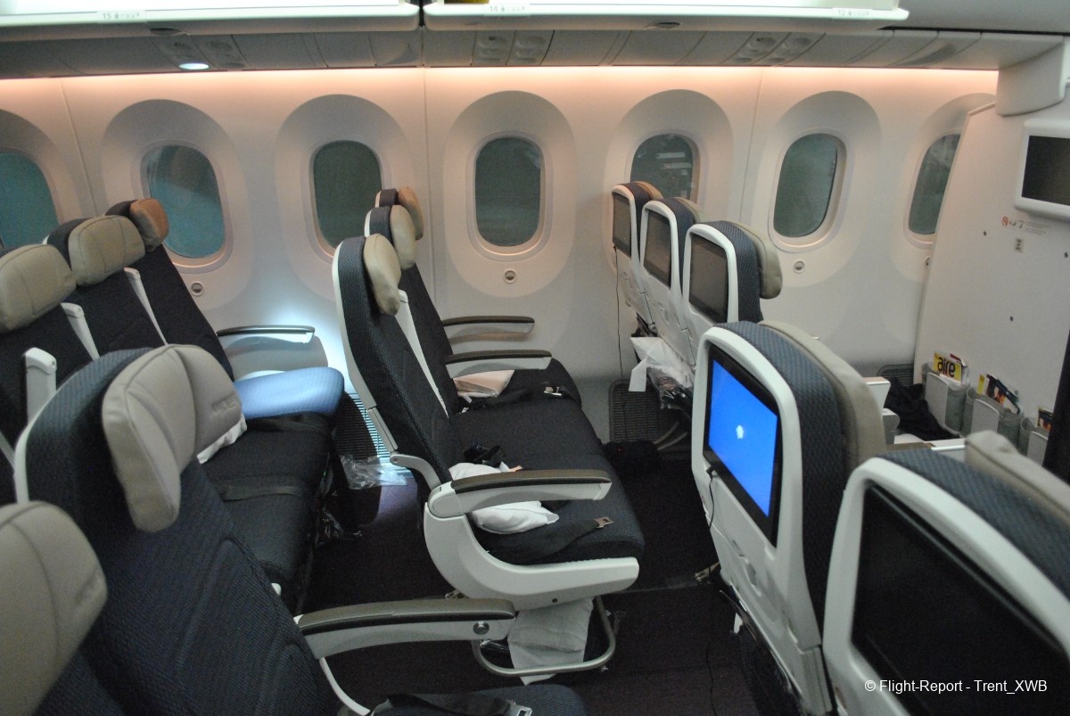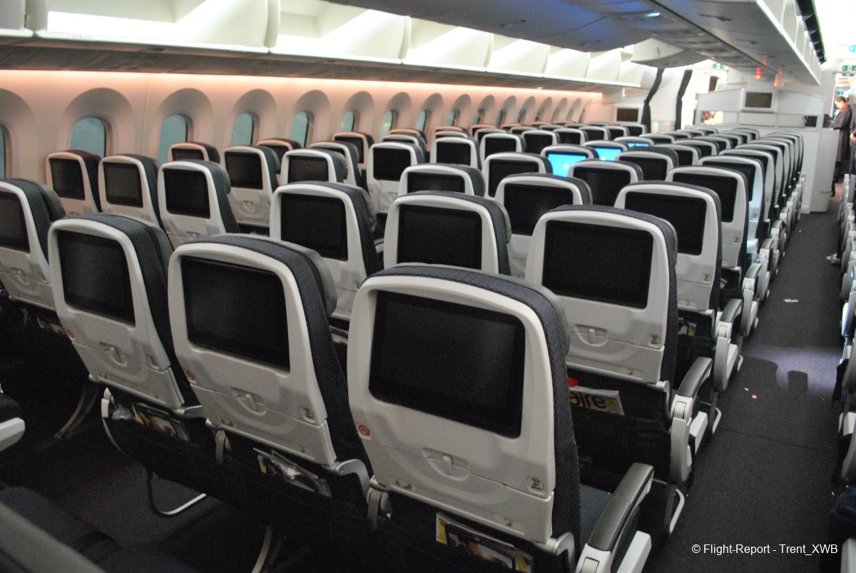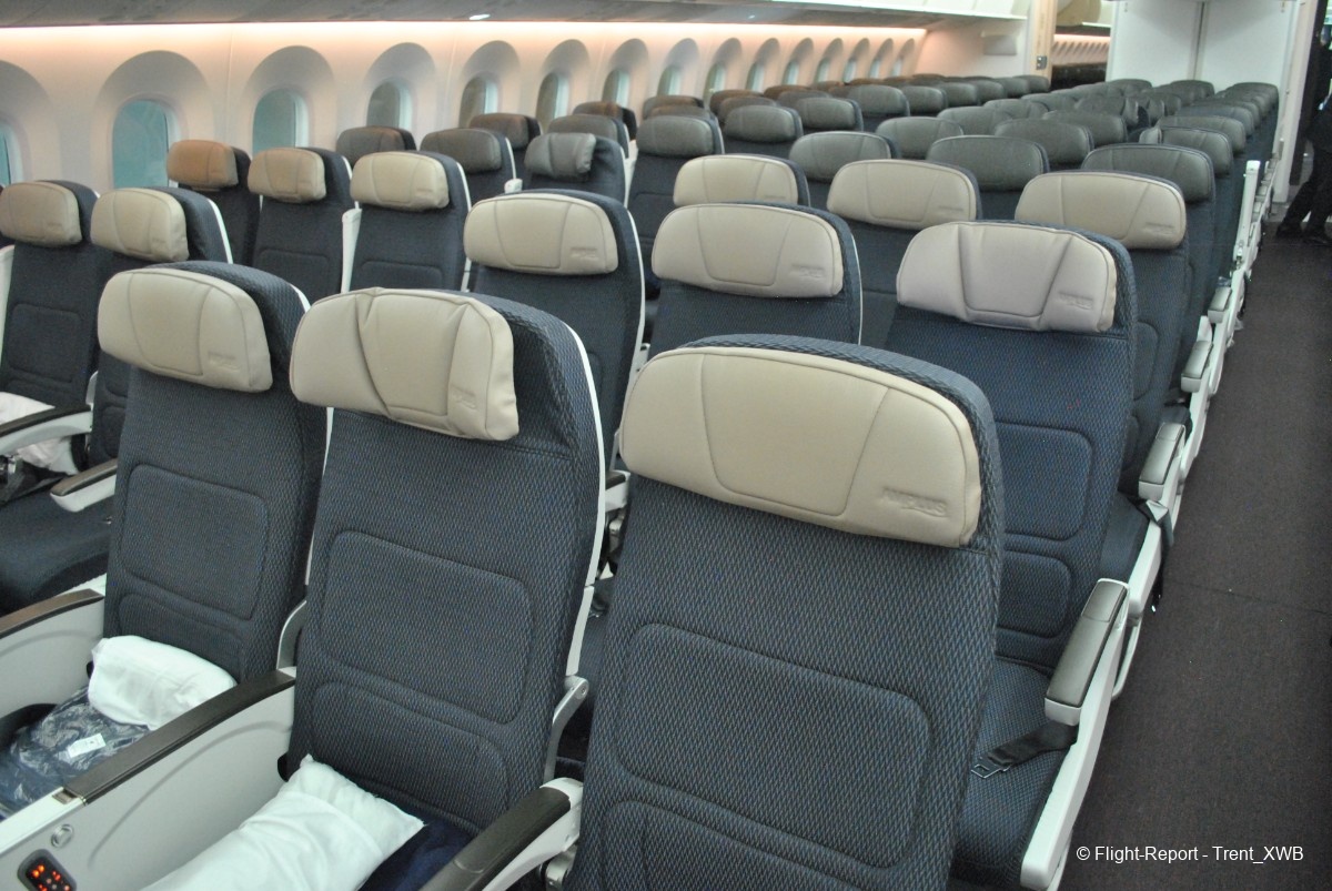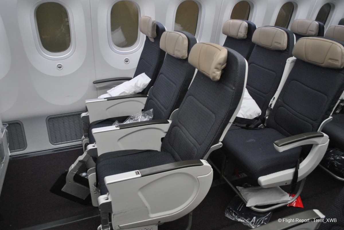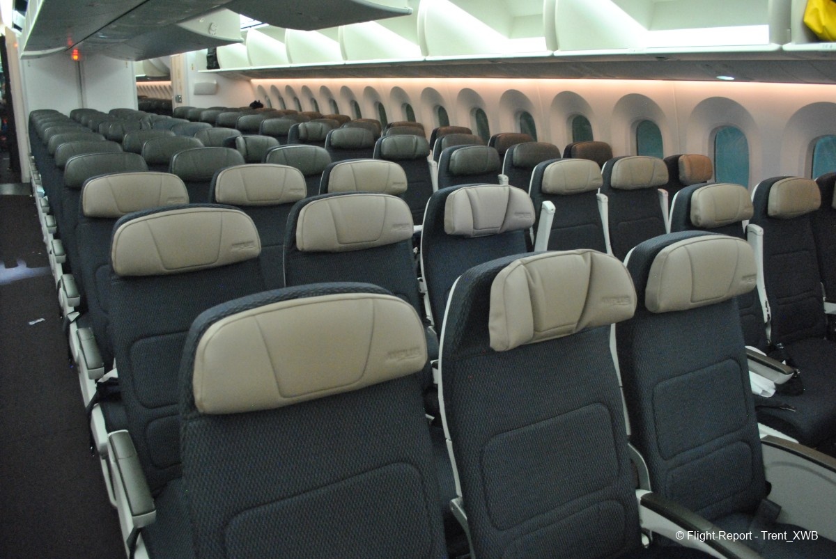For the views of the front economy cabin I'll use photos made after AMS-MEX flight (on the identical B789s), so please don't mind some mess on the photos. Rows with beige headrests have increased pitch, rows with dark grey headrests are regular.