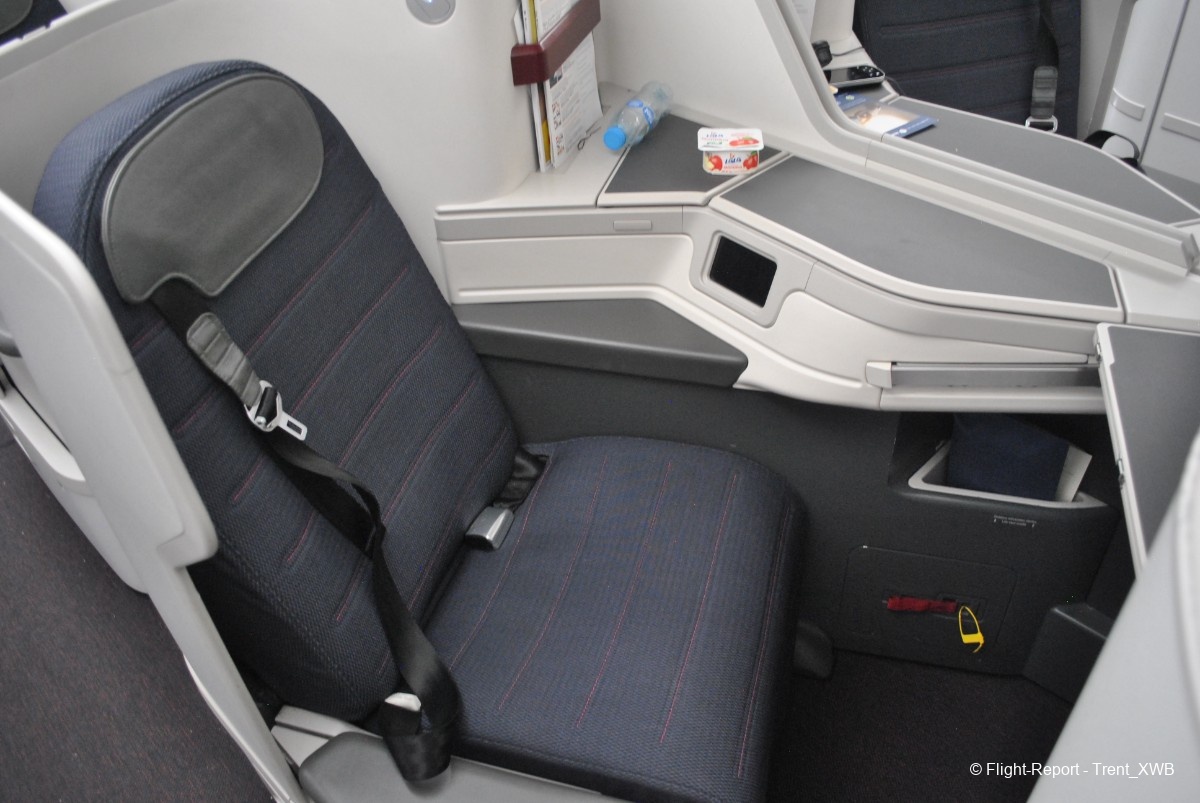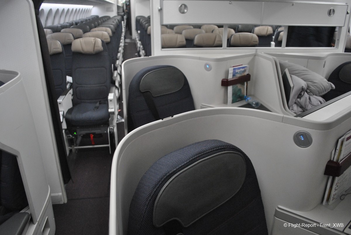 The business class consists of 36 Collins Super Diamond seats in 1-2-1 layout and distributed between 2 cabins: the larger front one (between 1L/R and 2L/R doors), having 30 seats, and the 2nd small one (after 2L/R doors), having just 6 seats.