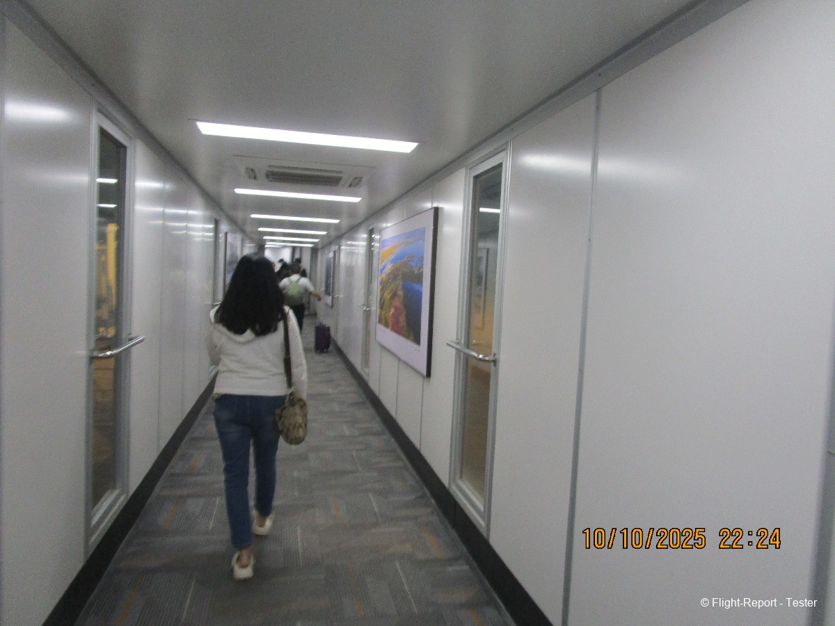 I arrived at the airport at around 8:00 p.m. Then, I went inside the terminal building to go to the check-in counter.