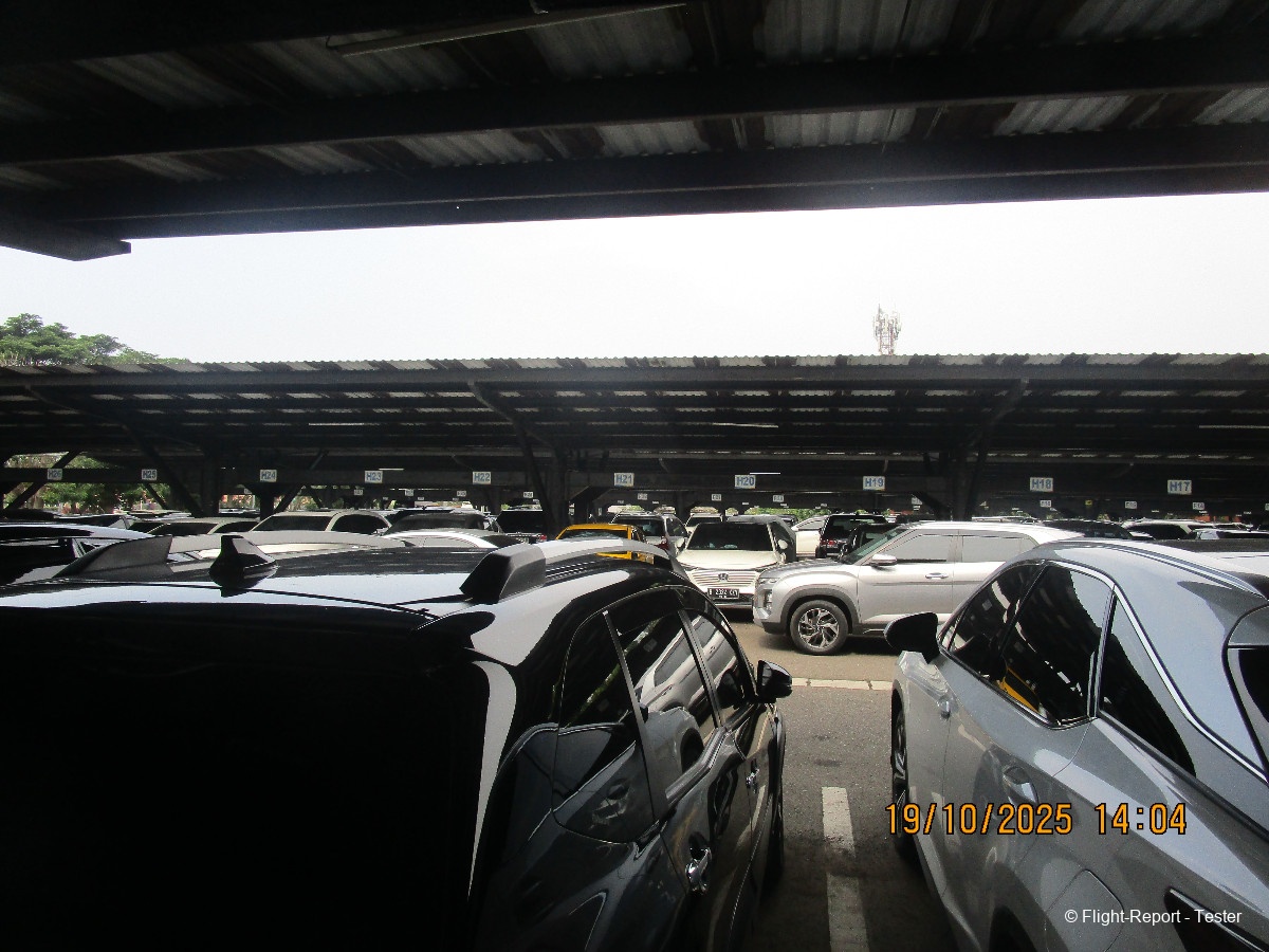 I arrived at the airport at around 14:00 by using car. After parking the car in the overnight parking area, I took the sky train from the parking lot to the terminal building.