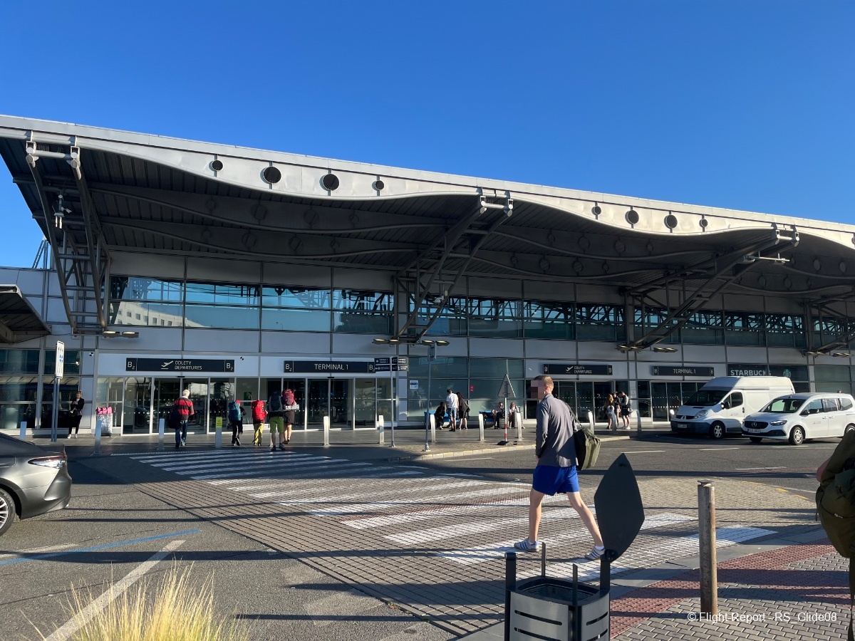 In the end, I arrived at the airport three and a half hours before the flight: early enough that check-in hasn't opened yet. I went to the café at check-in and had a small breakfast - a ham and cheese toast and a hot chocolate - which was pretty delicious.