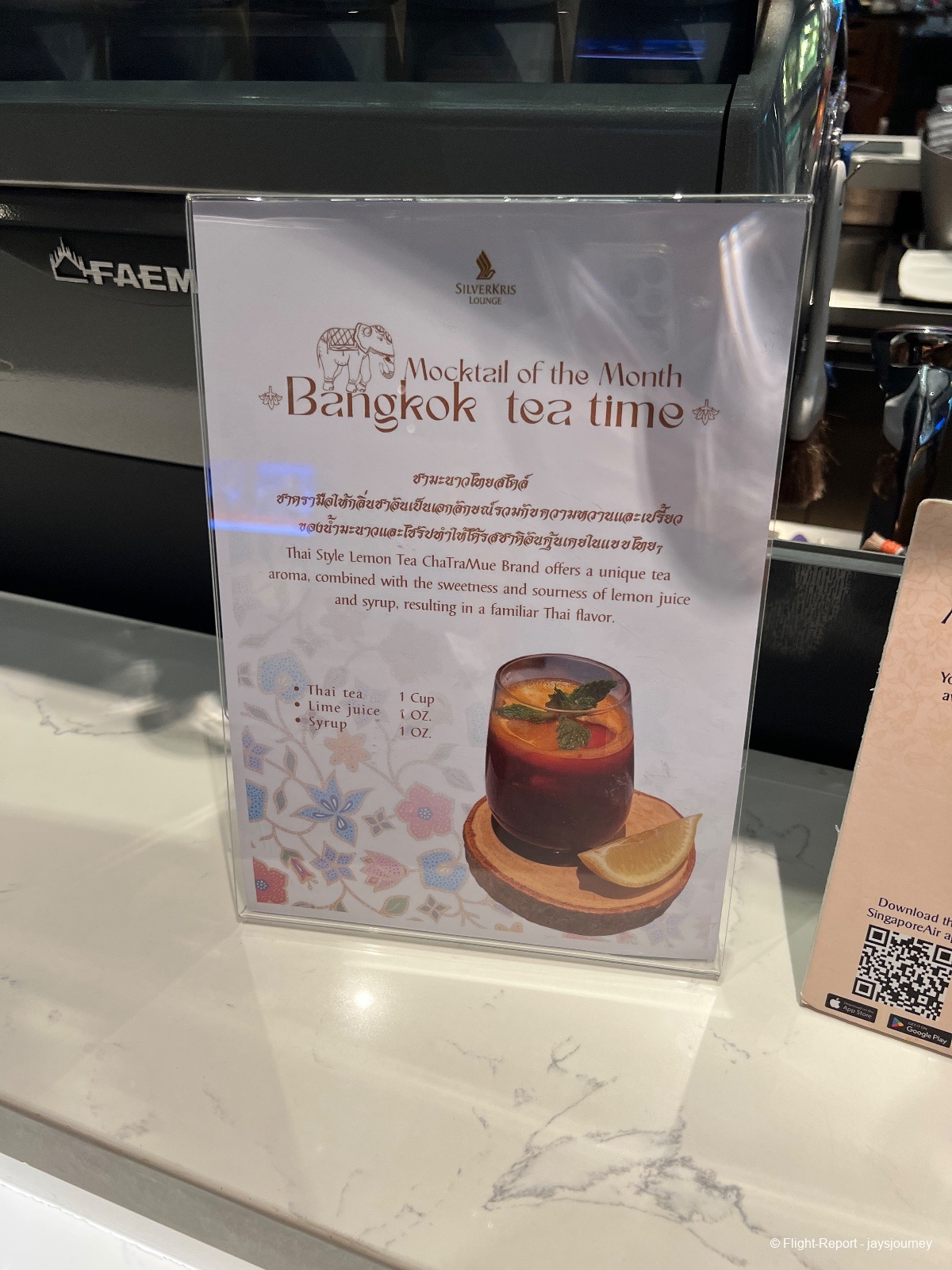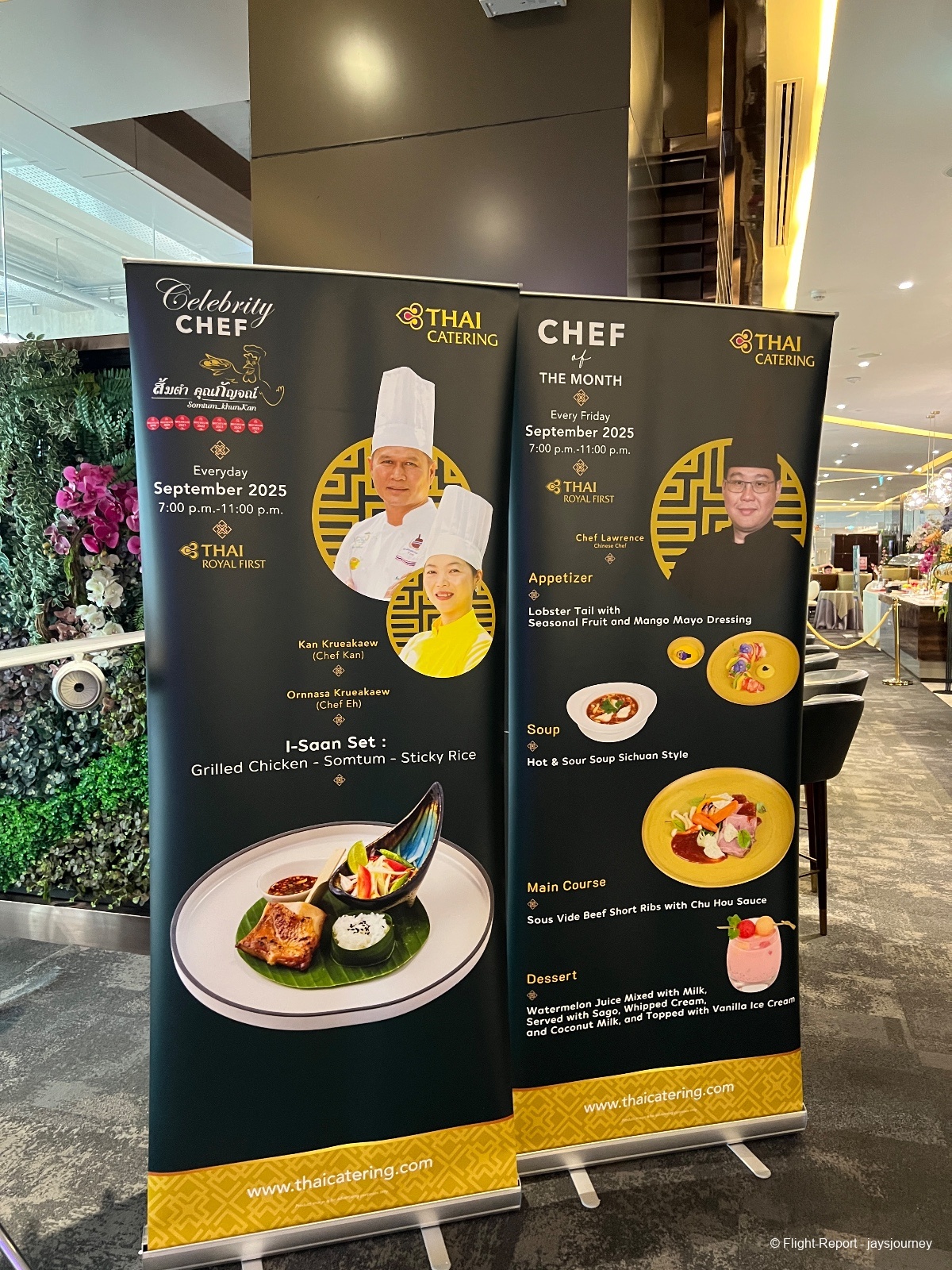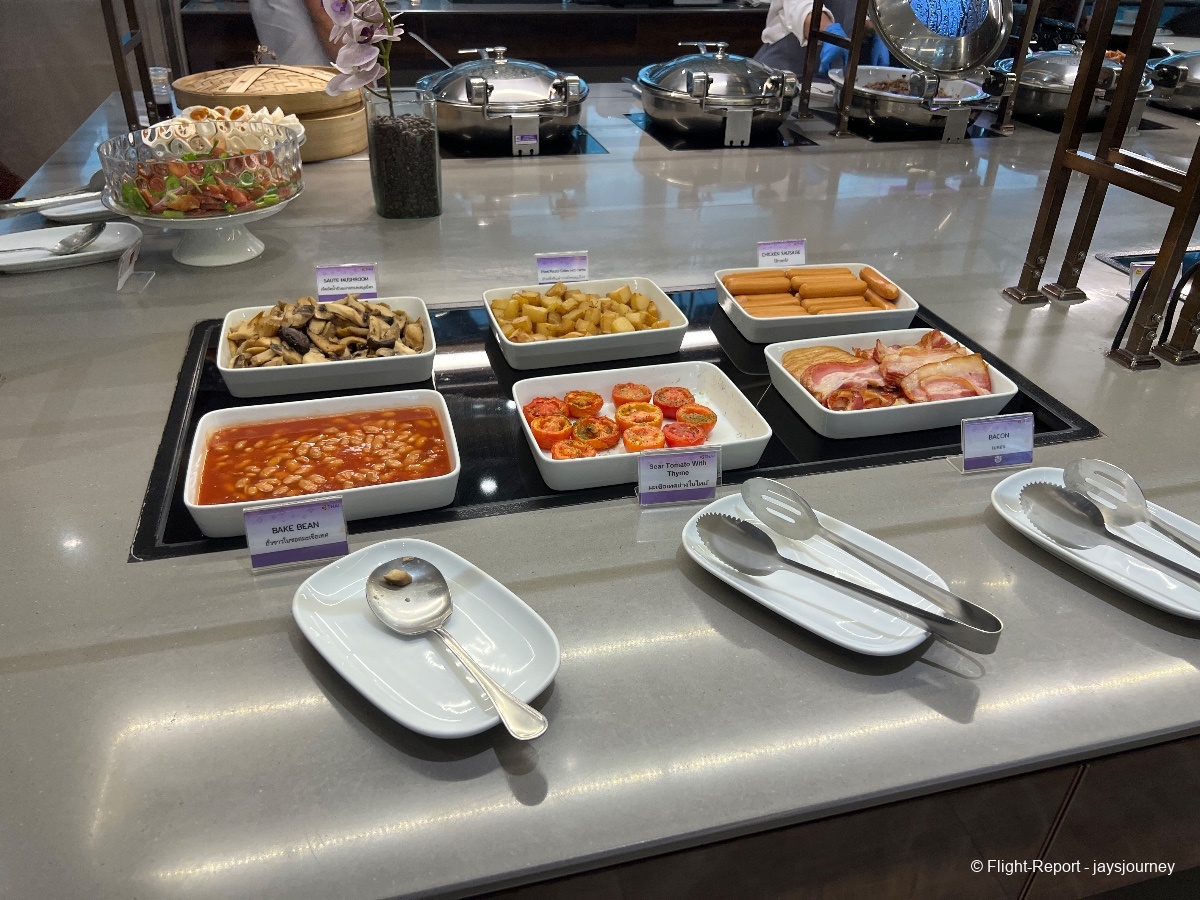 Out of curiosity, I also popped into the TG Royal Orchid Lounge, which is Thai Airways’ newest lounge. It was noticeably less crowded and much brighter than SilverKris, with a wider range of food options and even a made-to-order egg station. They were also showcasing a “Chef of the Month” menu that looked far more interesting unfortunately, it’s only available at specific times.