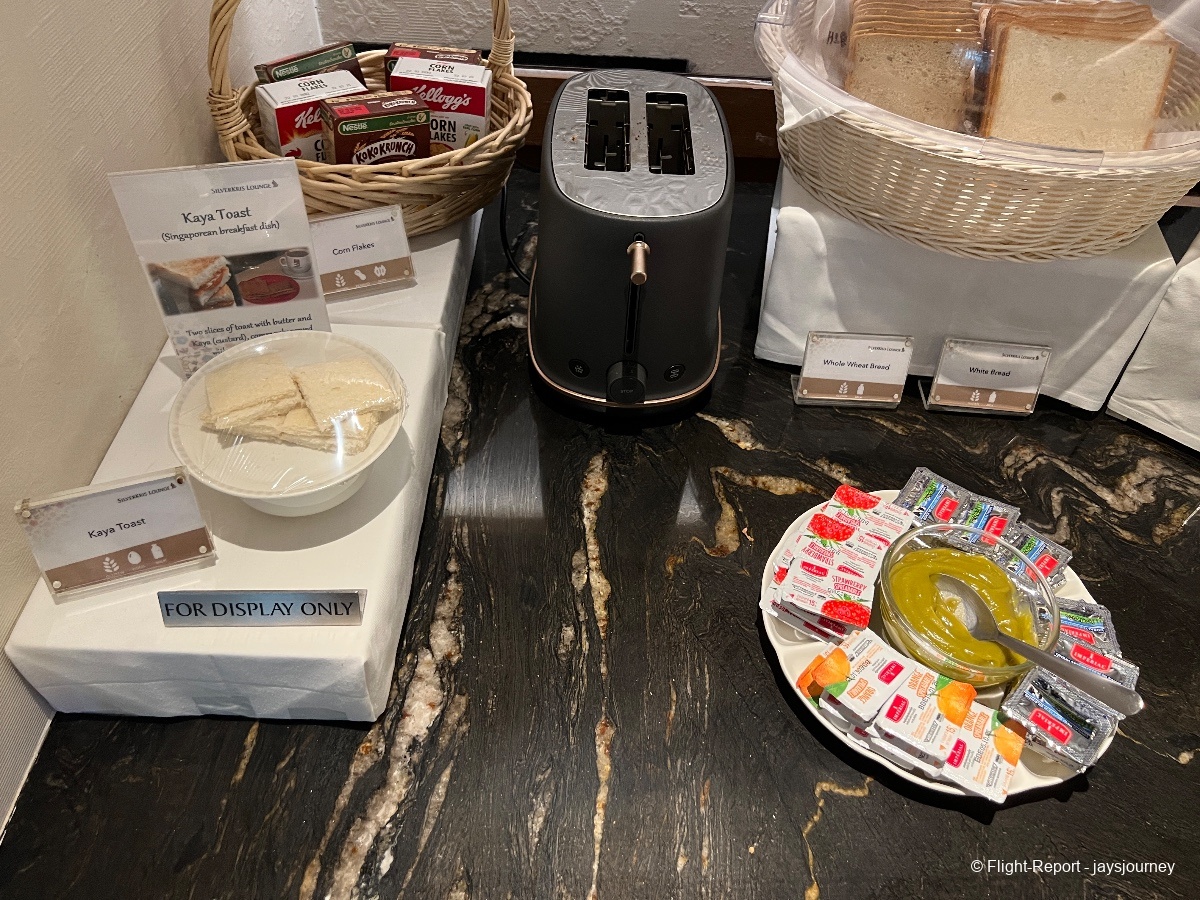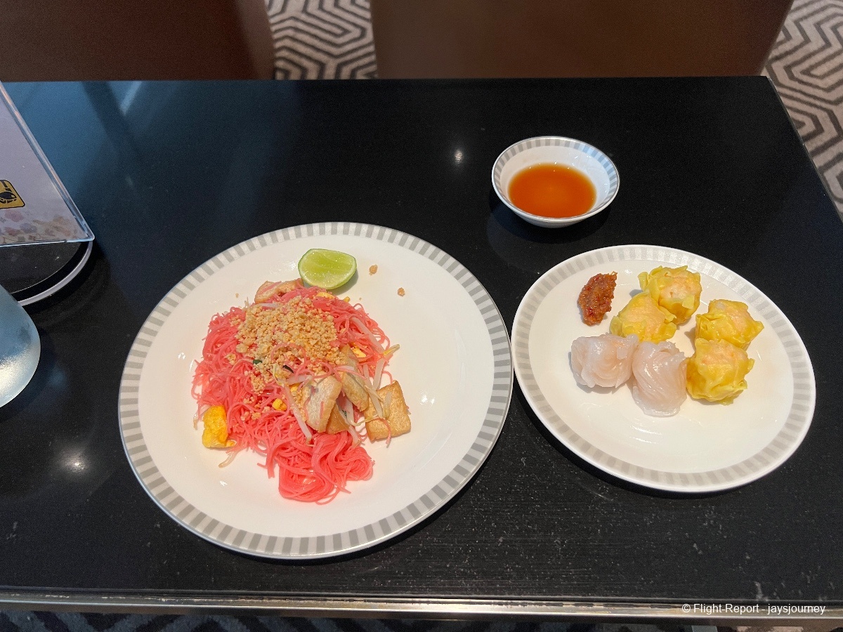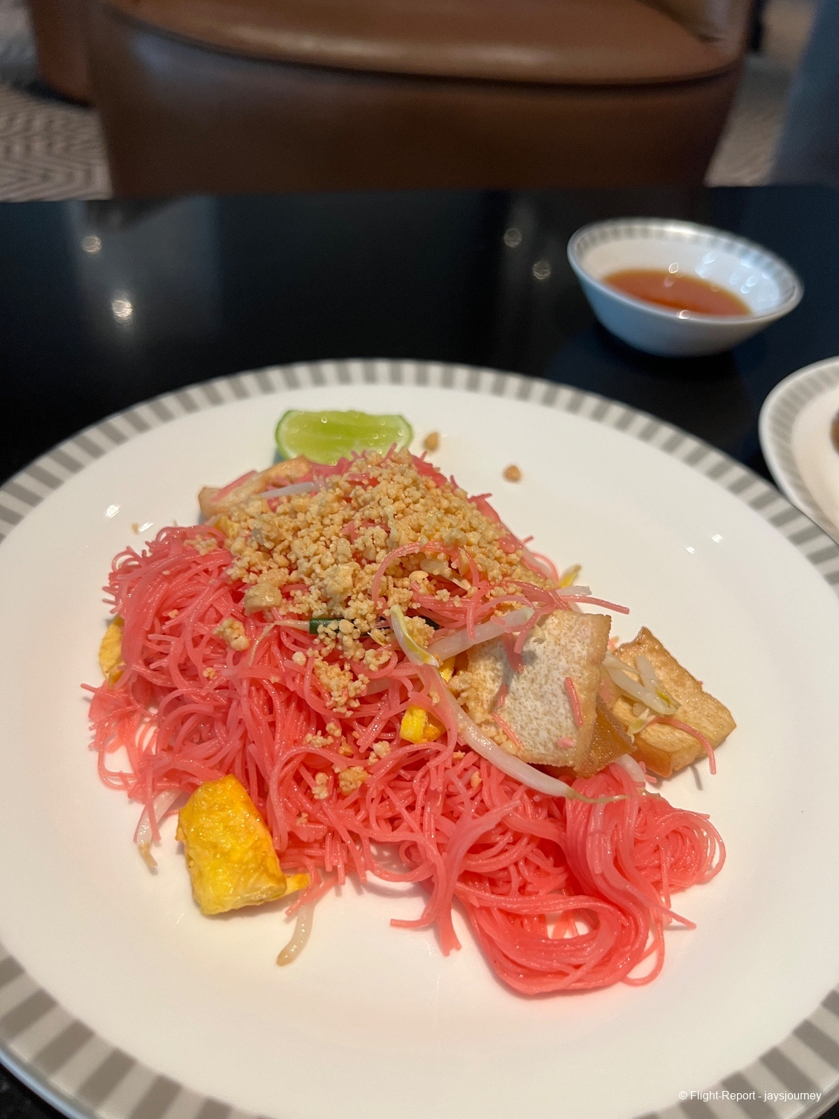 The bar itself is extremely good with lots of both alcoholic and non-alcoholic options to choose from. For September, I tried the Thai Tea mocktail on the seasonal menu and found it refreshing (though I eventually went back to champagne). The morning food selection was, in my view, slightly above average. Kaya toast, dim sum, and the pink noodles were the standouts.