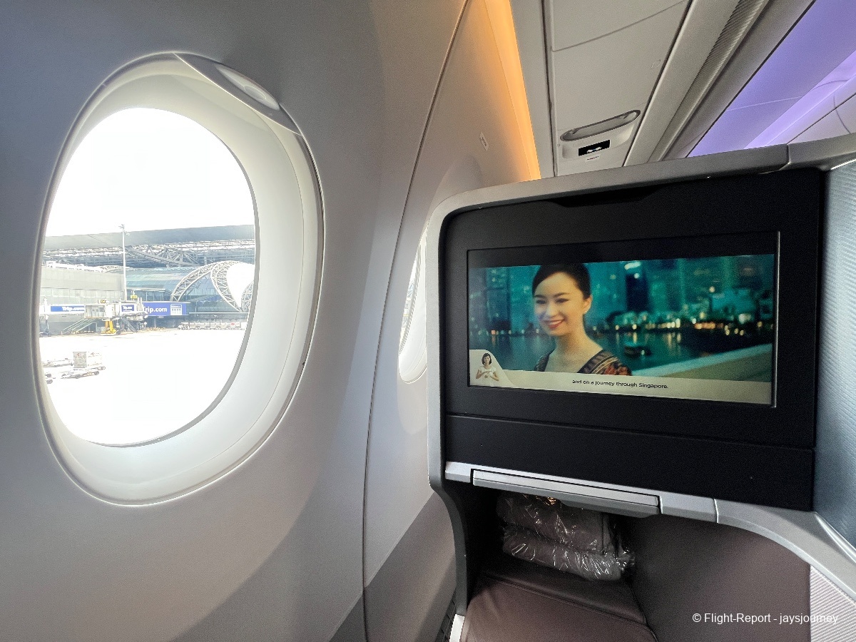 After spending sometime at the lounge, I slowly make my way to the gate where priority boarding was in progress. Today's flight will be on an A350-900 Medium Haul with the registration 9V-SHG. I was greeted by the flight attendant and soon make my way to seat 17A that I selected when making a booking.