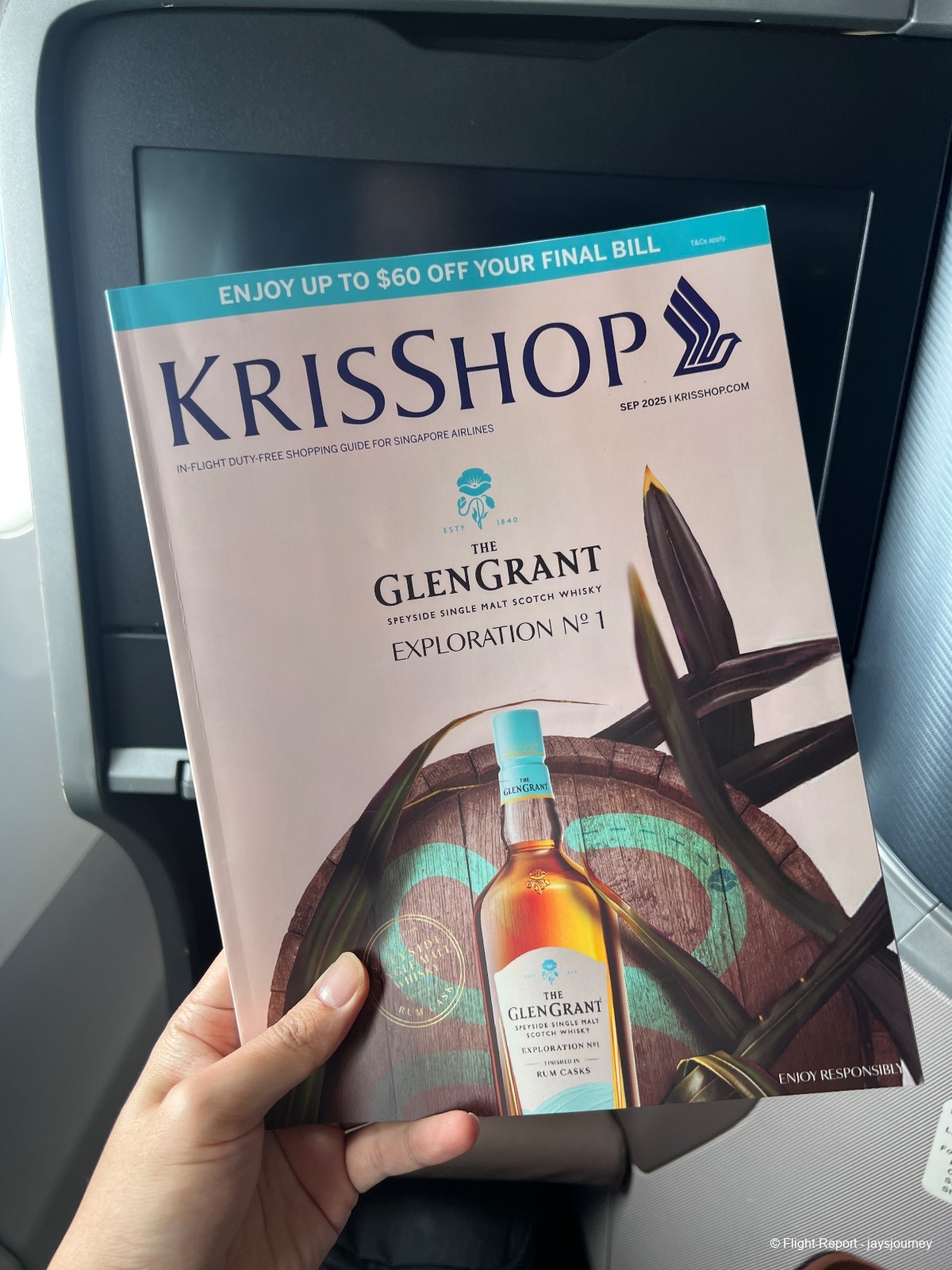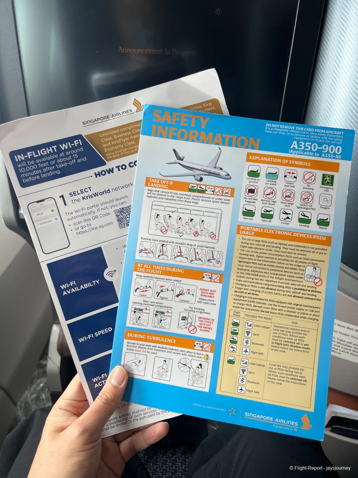 While waiting for boarding to finish, the crew came around offering juices and I went with a refreshing apple juice, followed shortly by a hot towel. In the seat pocket, you’ll find the usual stuffs: the safety information card, Wi-Fi instructions, and the duty-free catalogue.
