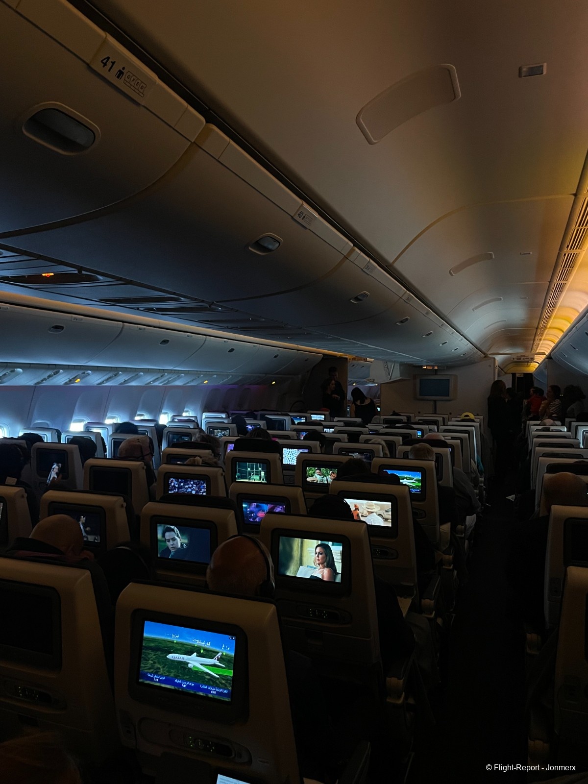 Once boarding began, I walked through the jetbridge onto the aircraft. Tonight’s flight was on a Qatar Airways Boeing 777, registered A7-BAX. This aircraft was 13 years old, delivered in August 2012.