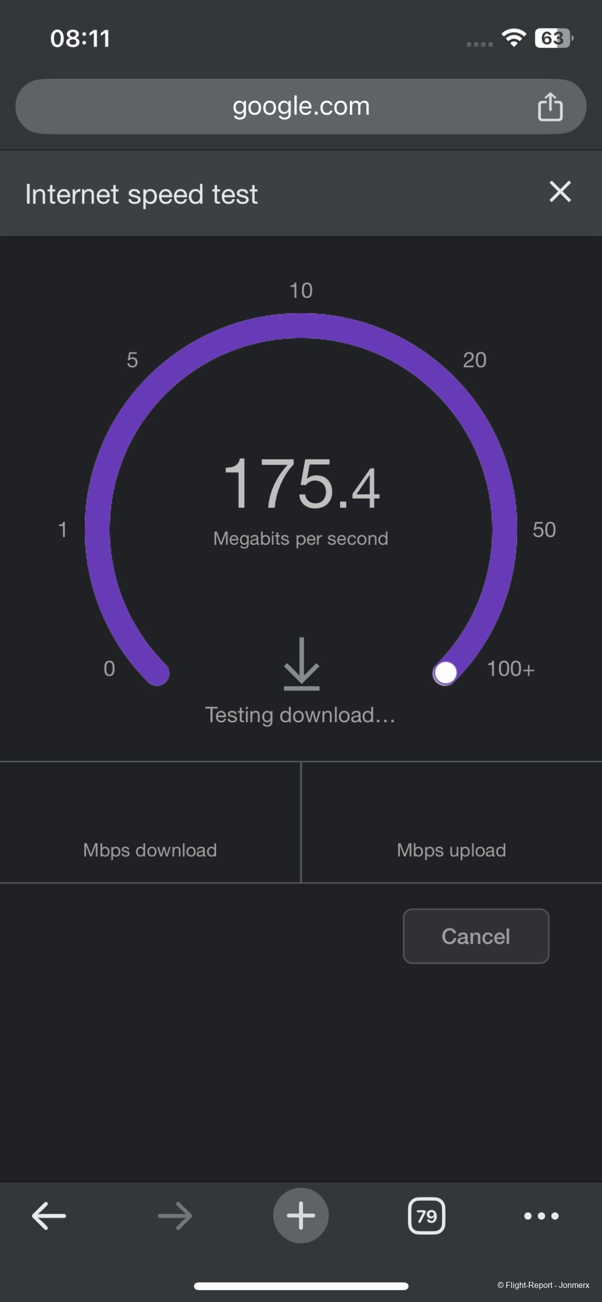 The Wi-Fi on board, provided by Starlink, was free, fast, and stable. I recorded speeds of around 176 Mbps.