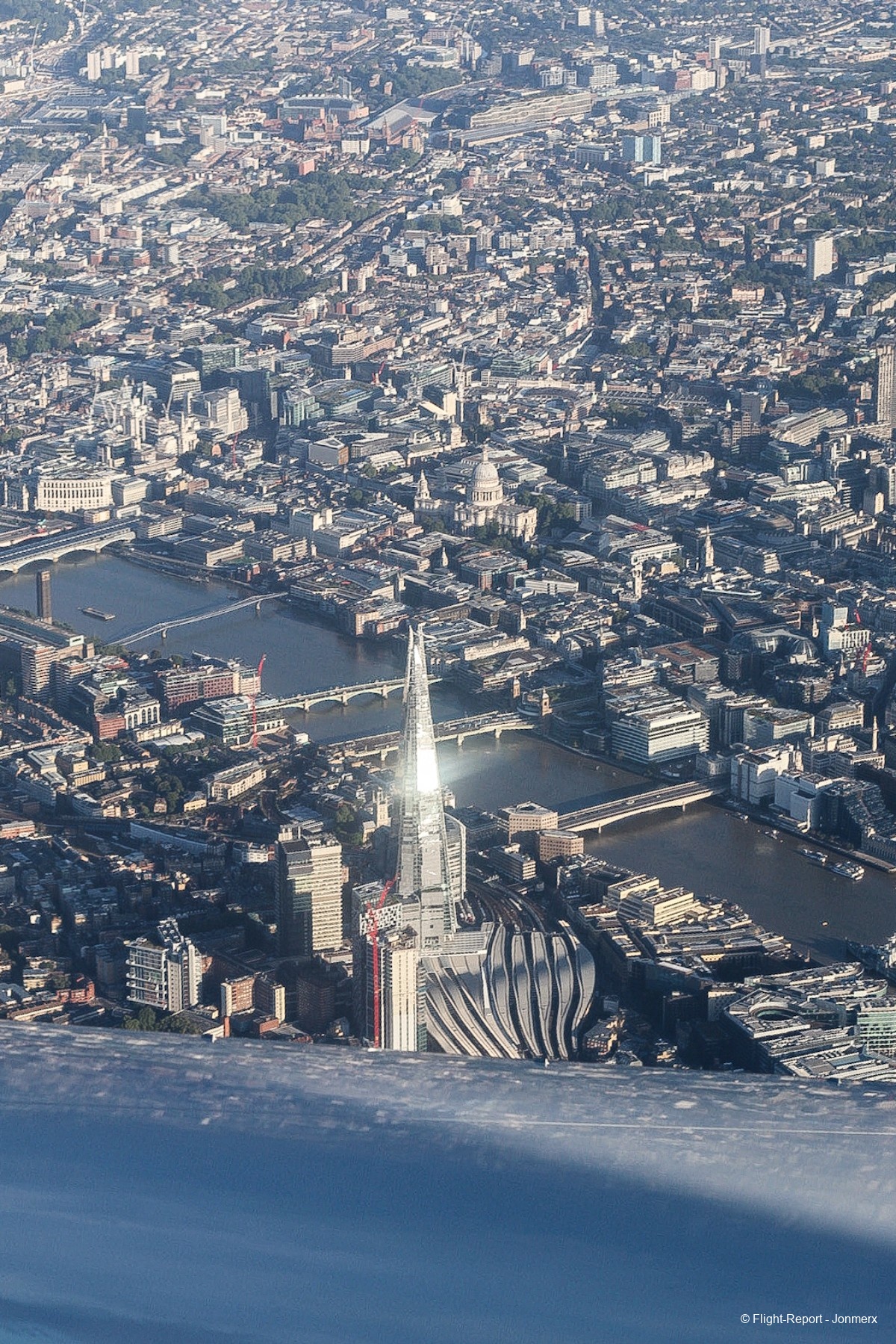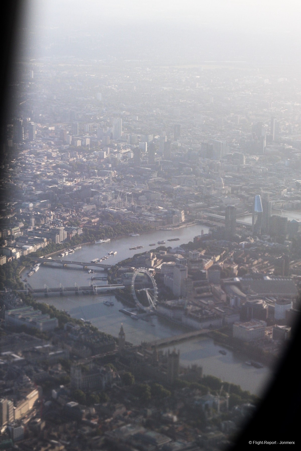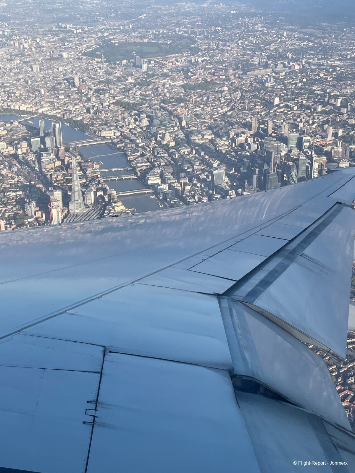 On approach to London, we flew directly over the city, offering excellent views.