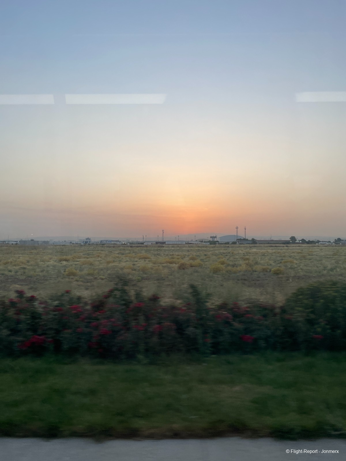 Security at Erbil airport is tight because of the European flights. Driving into the complex, you're greeted by sniffer dogs, who take a quick nose of your car. After that you reach the small meet-and-greet terminal where people say their goodbyes and drivers leave. An officer checks your ticket to make sure you’re a passenger, then you go through a basic security scan — just put your bags on the conveyor, no need to unpack. After that you board a shuttle bus for a quick ride to the main terminal.
