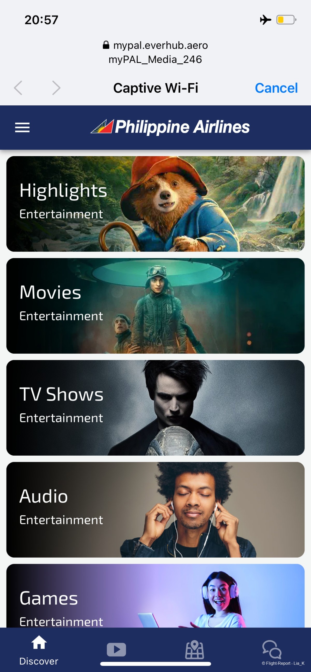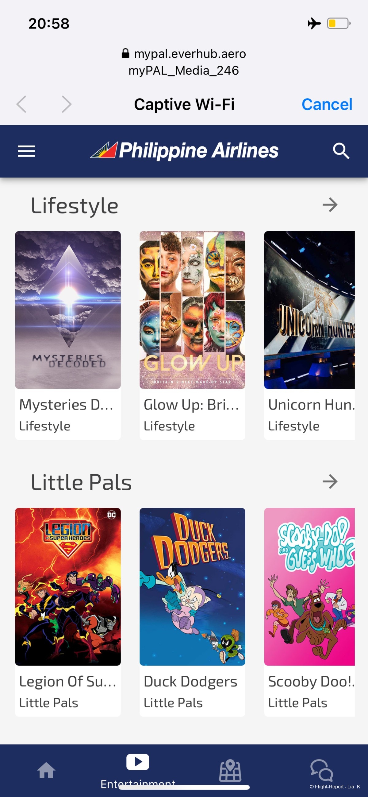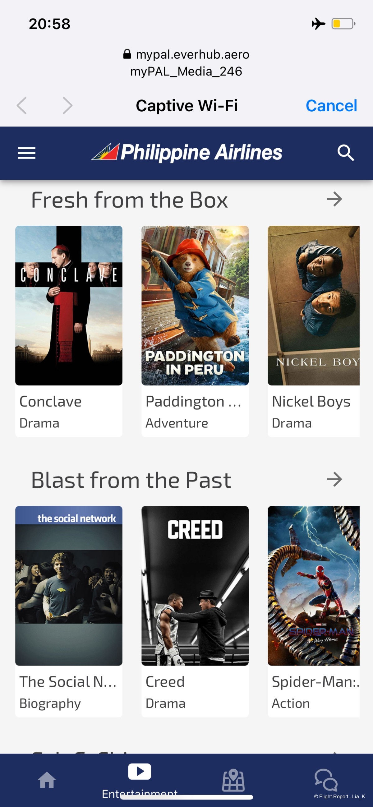 And here it is. There's a very good selection of films/shows available. A moving map is also available.