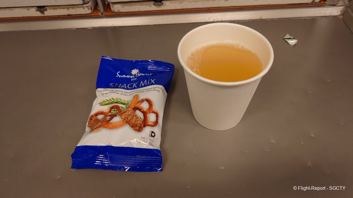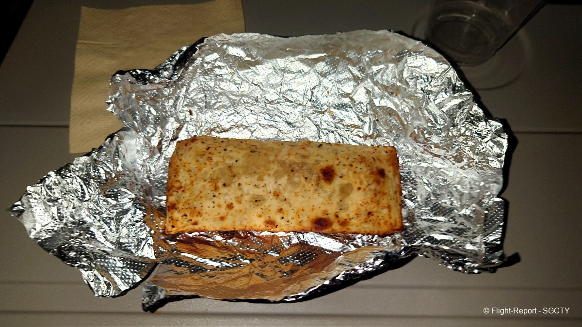 The crew walked around mid-flight with heated pizza wraps. This was surprisingly delicious and did not taste like processed frozen food.