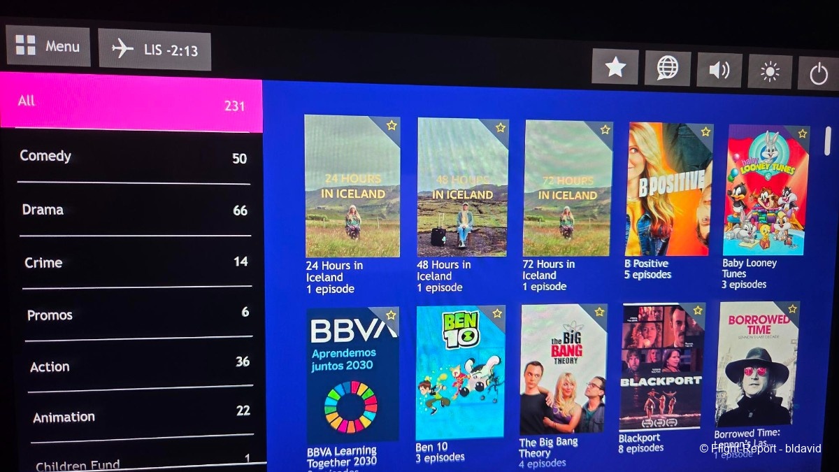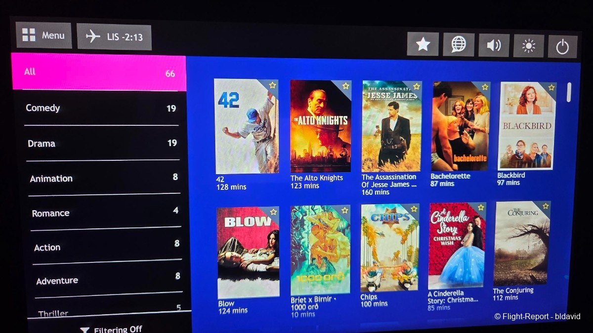 In-flight entertainment offers 66 movies, 231 TV shows and 534 music songs.