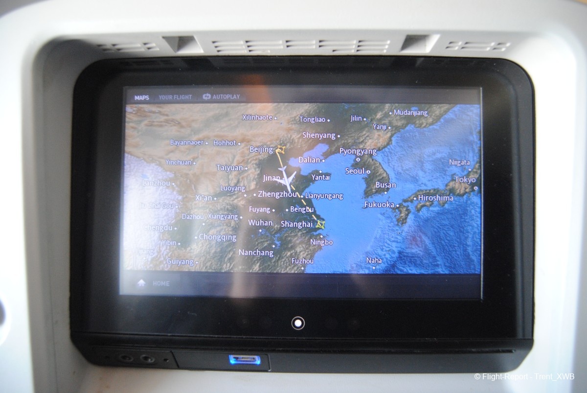 Let's explore the IFE. It turned to be rather weak content-wise, compared to the ones in KE B748 and LH B748. At least the seatmap is partially adjustable. One can see that having just reached the cruising FL, we've already covered 1/3 way to SHA.