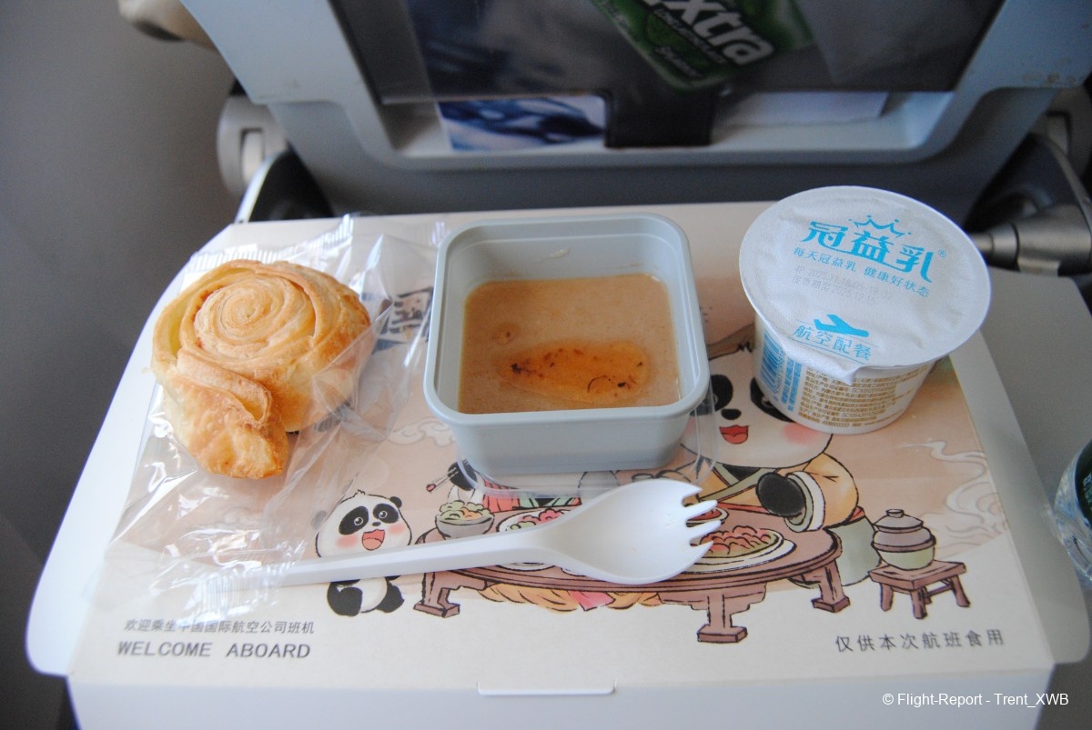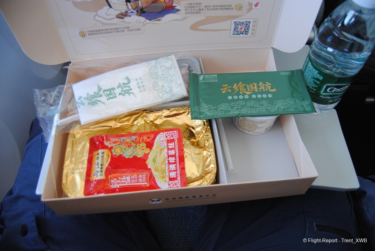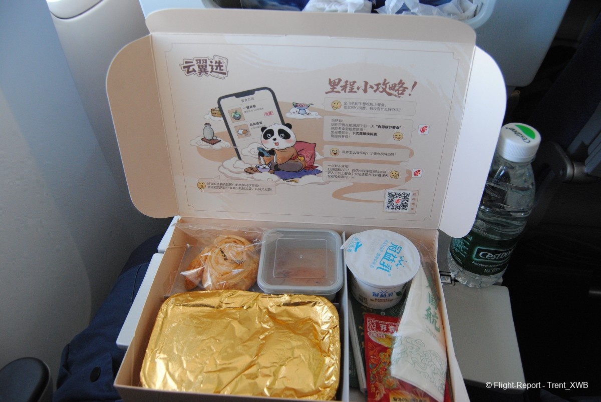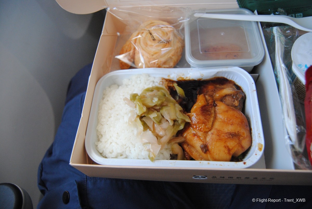 As we're halfway to SHA, the meal service is started. Just look at this - a beautifully presented hot meal on a short 1.5-hours flight! Wow! It's the same level of service as I experienced on OZ NRT-ICN flights! At the same time no drink service was provided, so a small battle of water was all you can drink. So, I recommend to take your own bottle and fill it in the airport, given that Chinese airports always have water dispensers.