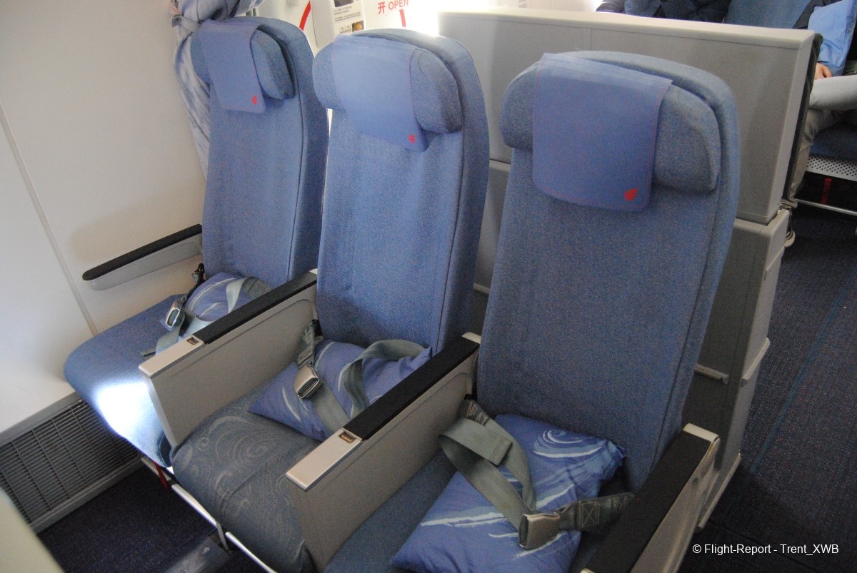 The economy plus cabin, consisting of 66 seats (the same as in regular economy, but with fixed armrests and increased row pitch), arranged in 6 rows (rows 31 to 37) with 3-4-3 layout, is located between 2L/R and 3L/R doors. It will be shown in details further. CA markets this cabin as "premium economy", but it's kind of cheating, because true premium economy cabin must have at least one seat less per row than economy cabin (resulting in significantly wider seats compared to Y).