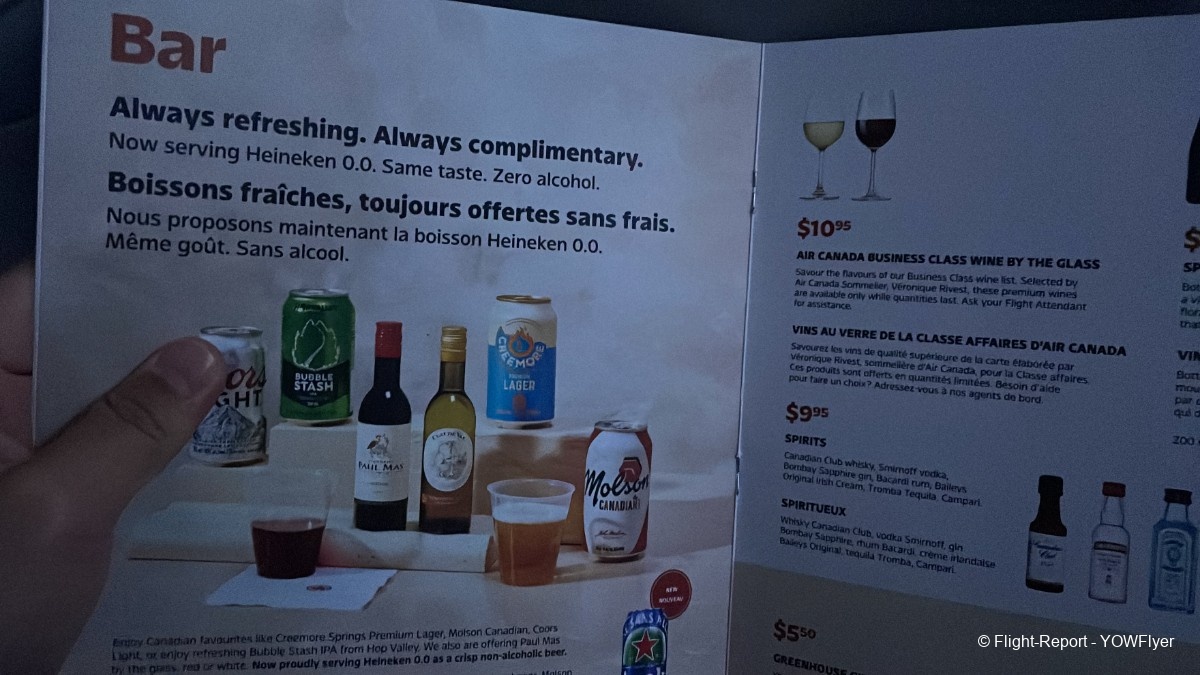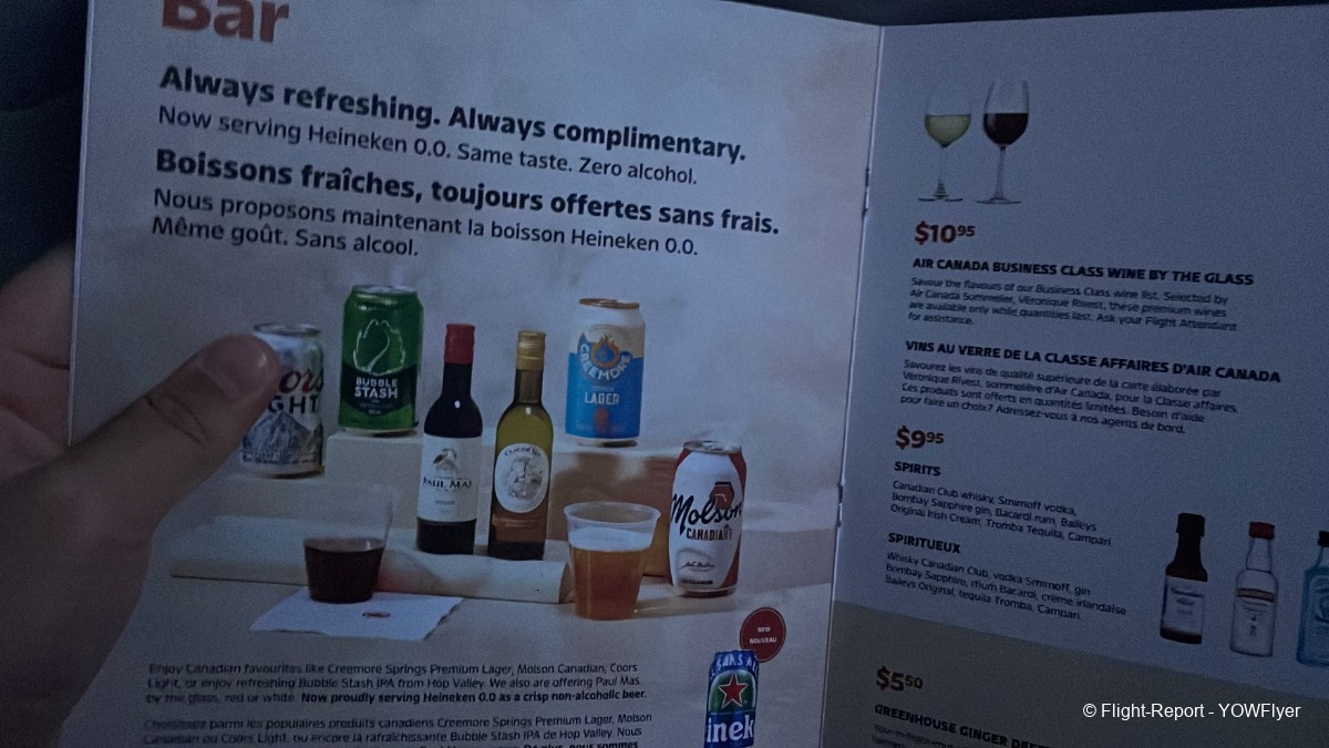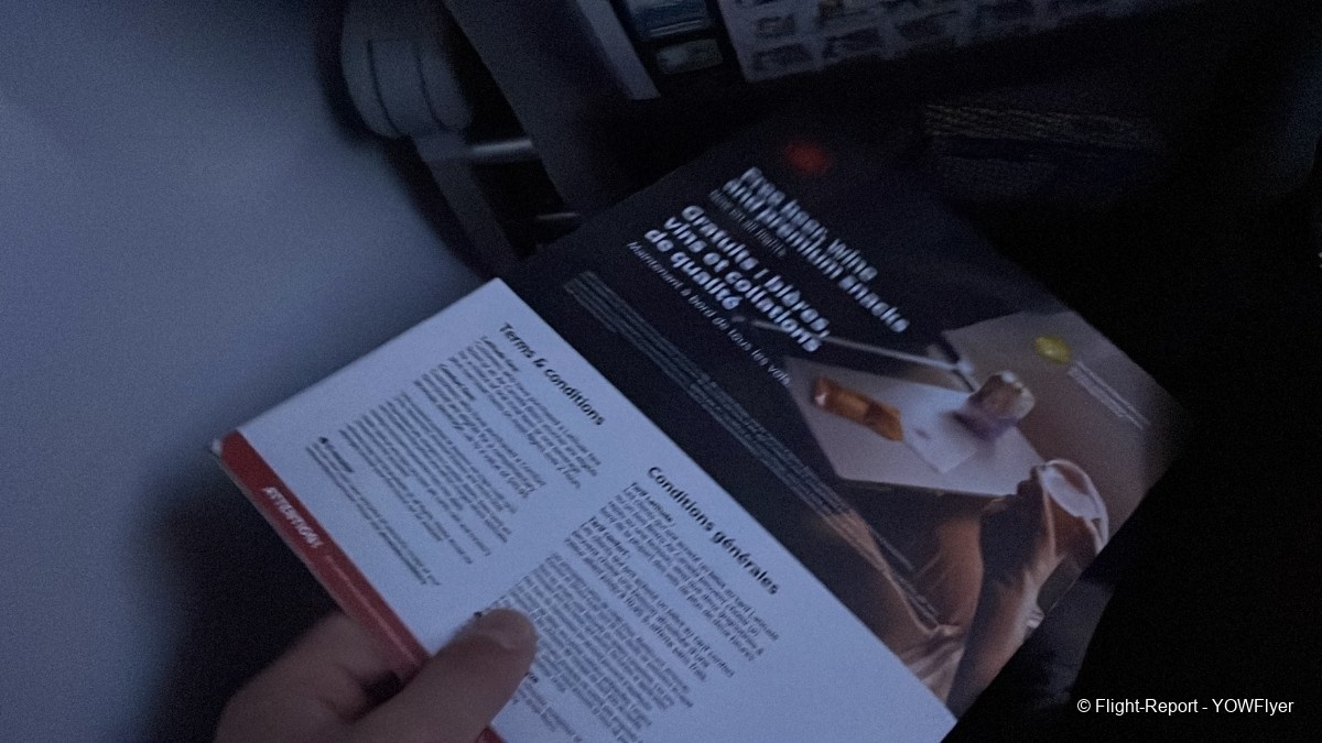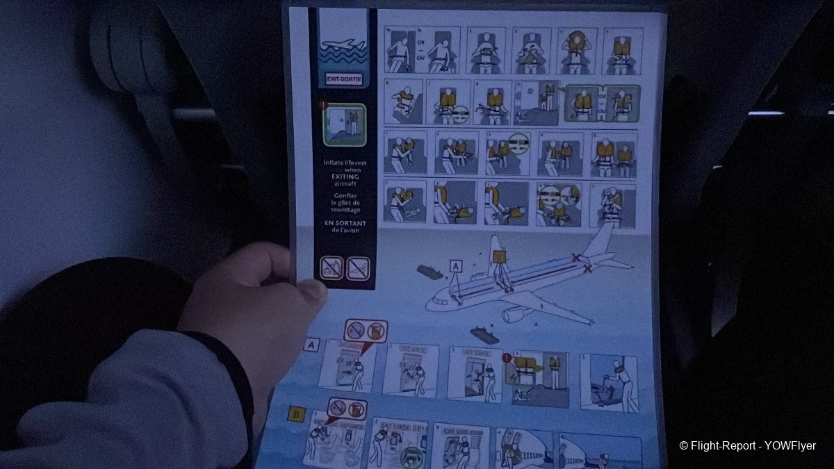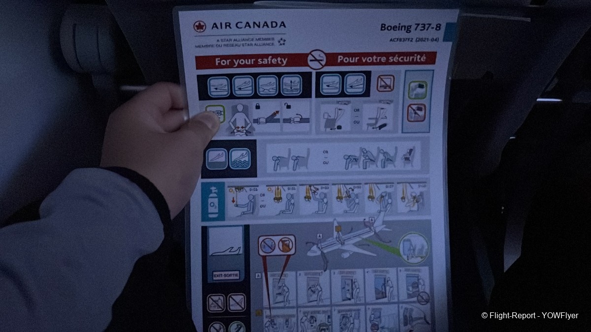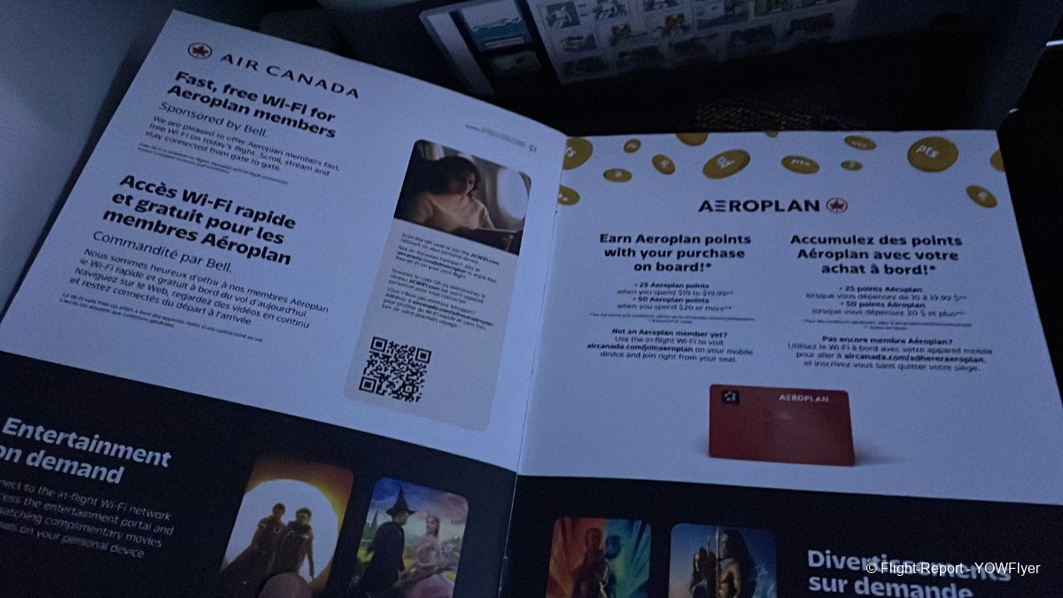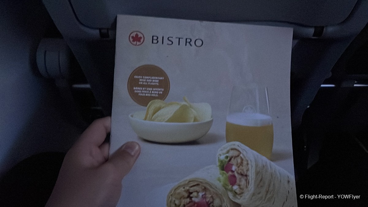 A look at the safety card and the Air Canada Bistro