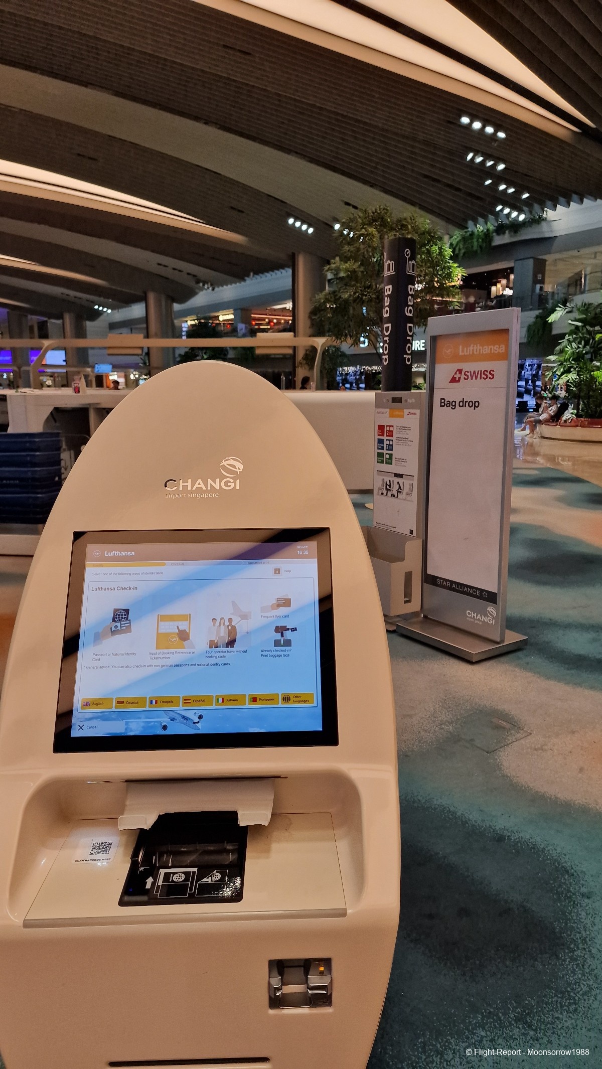 Check-in opened roughly 6 hours before departure: I was able to print my luggage tags & send my check-in luggage by myself in no time. Lufthansa's Premium Economy includes 2x23kg, exactly what I needed for this trip. I then waited in Singapore Changi airport, trying to find good spotting spots, ultimately failing as most of them are restaurants.