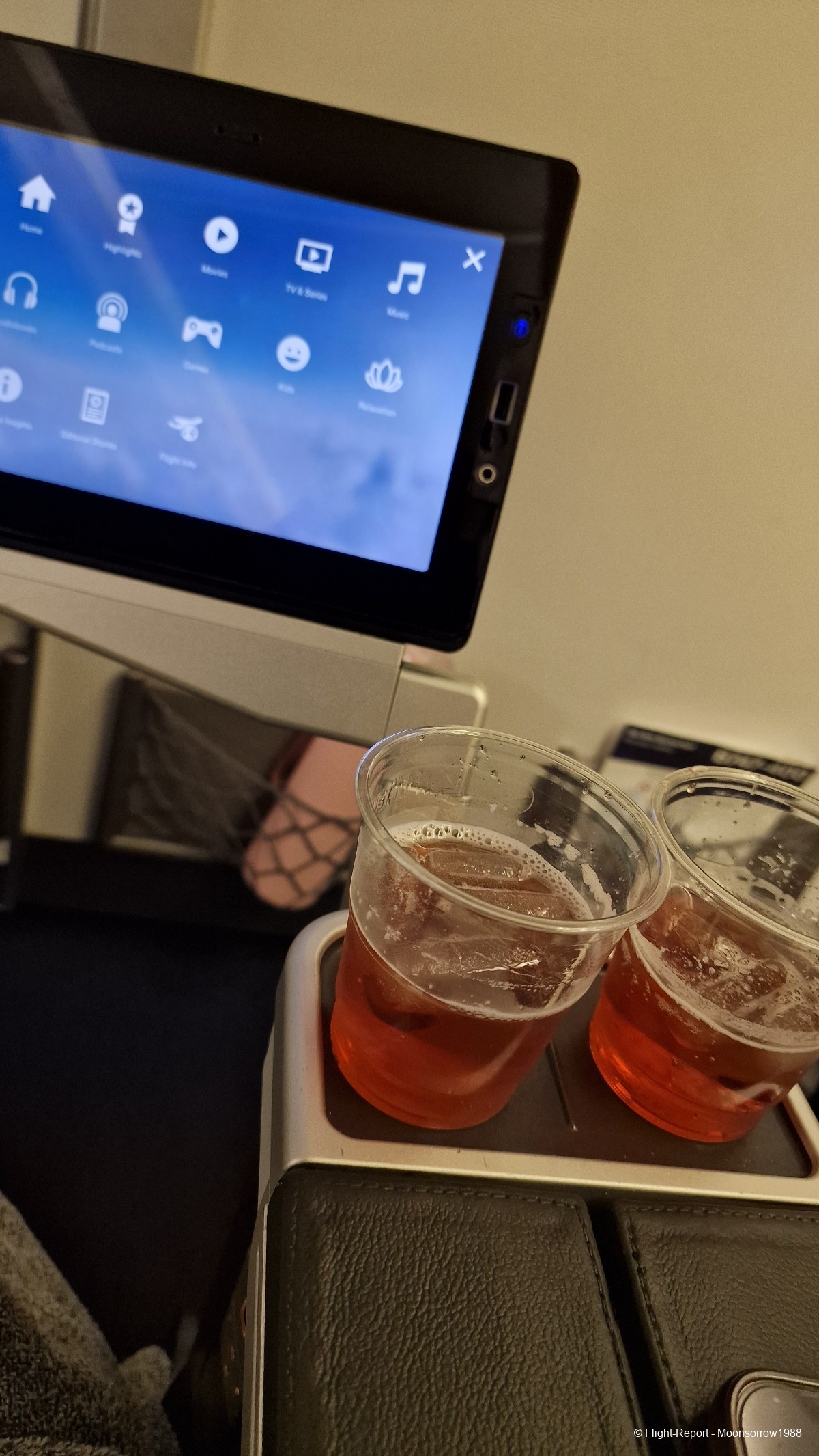 My seat was next to the kitchen panel, so that our screens are folded into the armchair. We had 3 windows, enough to capture the huge wings and the two massive engines underneath it. A bottle of water, a very (!) comfortable blanket and a lovely amenity kit had been put on our seats too.