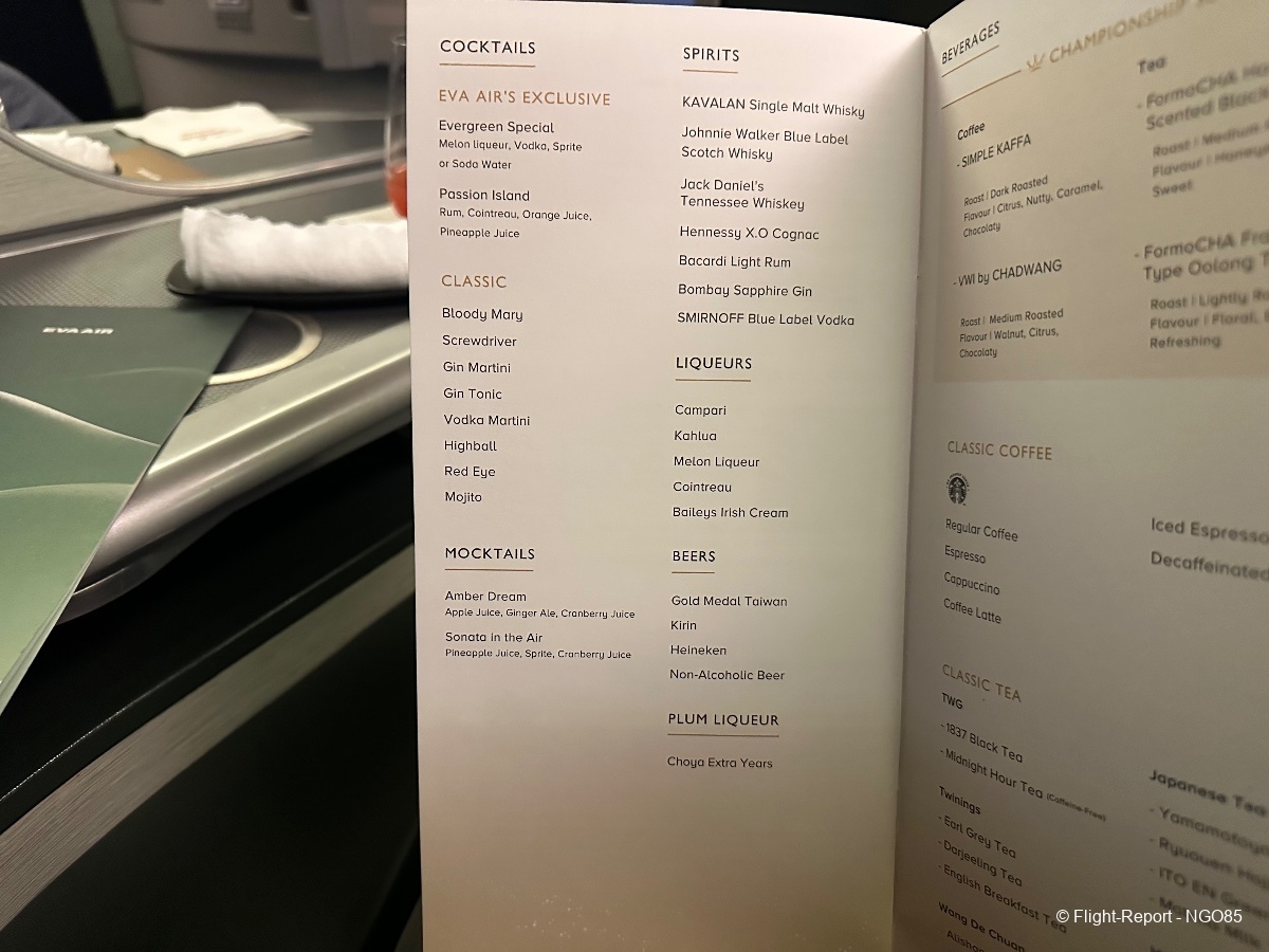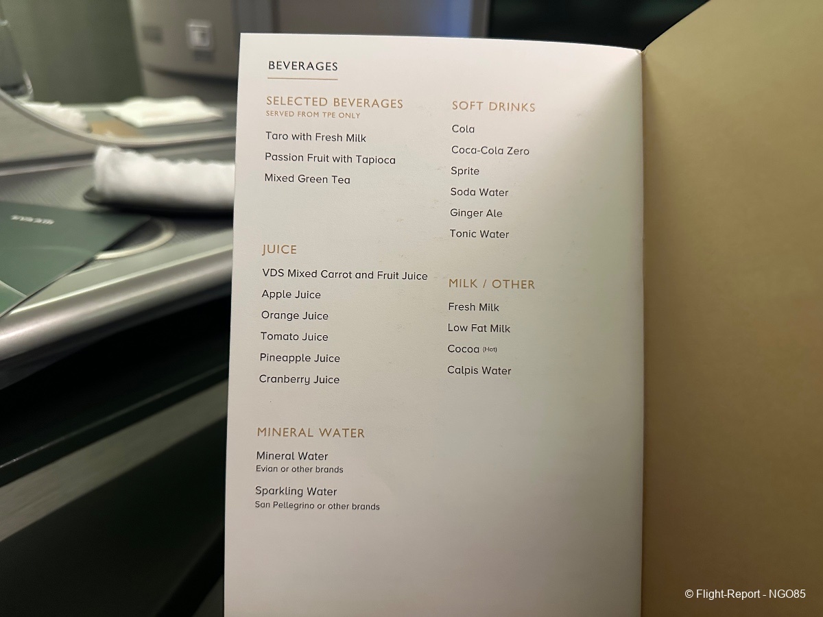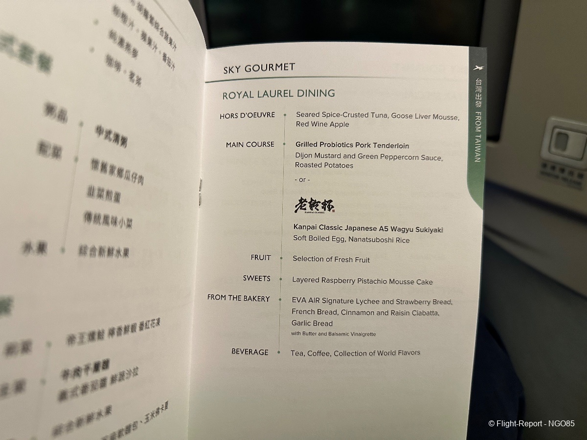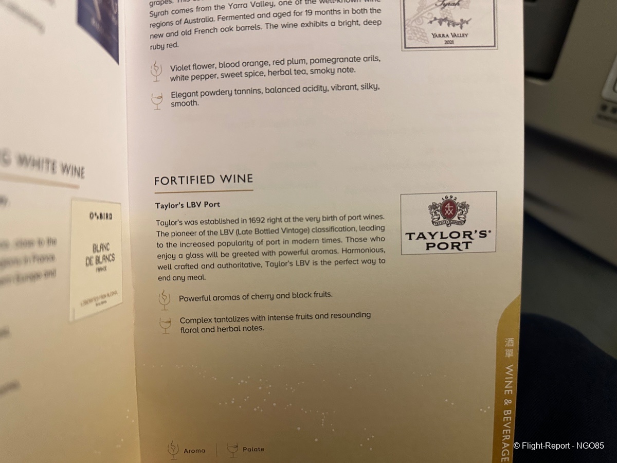 Since this flight departs around midnight, we do not get the full meal service and get an abbreviated dinner (no amuse bouche, soup, salad, or cheese courses). There are mid-flight snacks and meals available to order. Before arrival, we have the standard breakfast/lunch offering with giving you the range from a lighter Chinese breakfast or soup to a heavier beef lasagna.