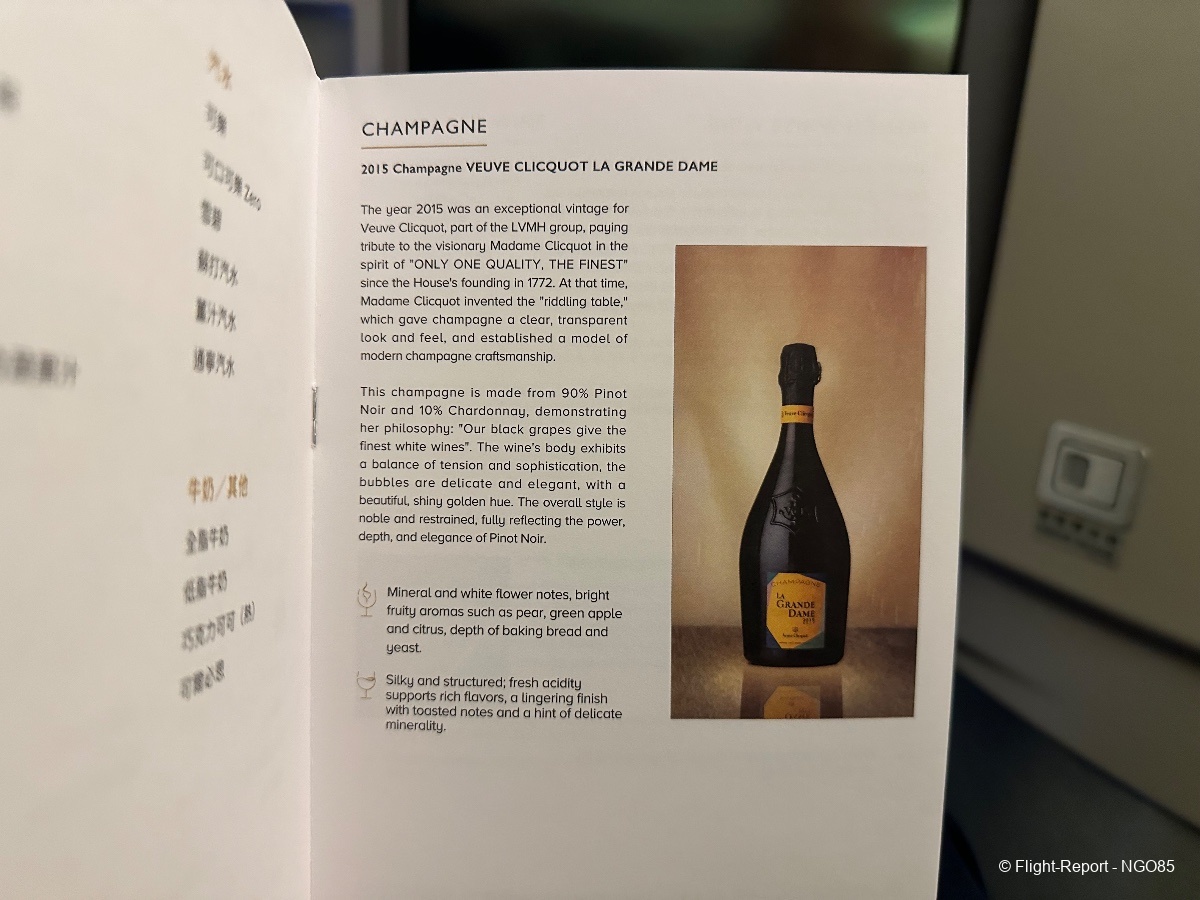 Linens were laid followed by the distribution of a bowl containing mixed nuts and dried fruits along with drinks. I cannot refuse La Grande Dame.