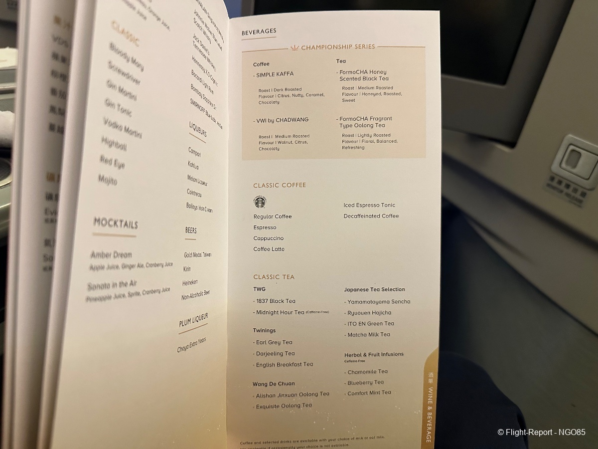 I pressed the call button to place a meal order for a snack. The FA let me know it would be ~15 minutes to prepare so offered a cup of tea while I waited. I tried their FormoCHA Honey Scented Black Tea, which was quite good.