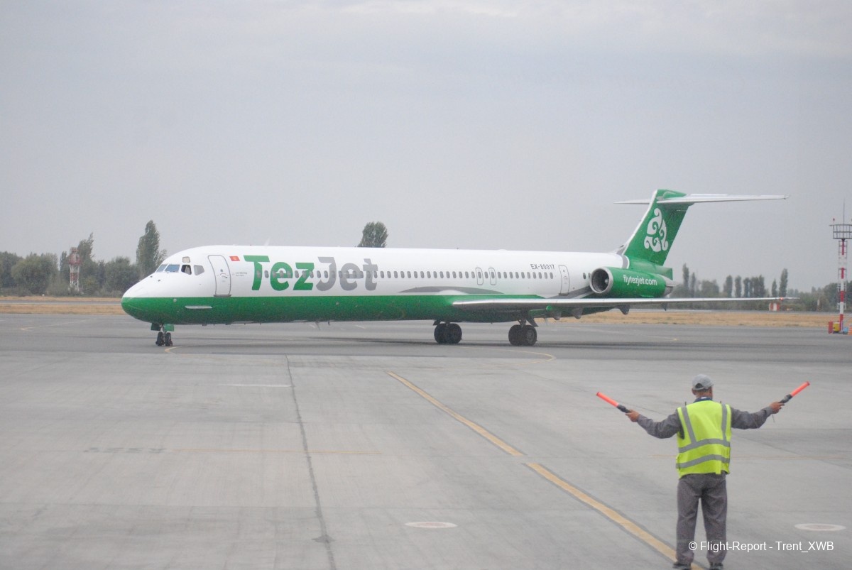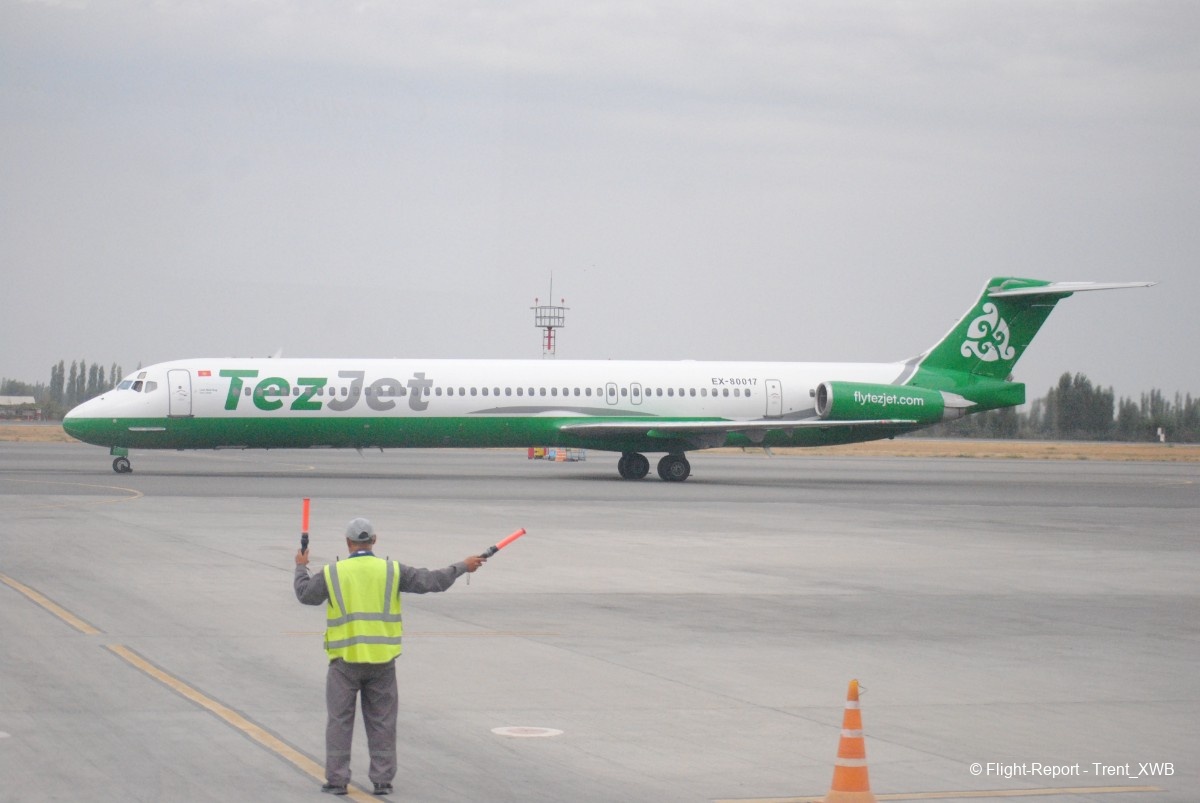 This FR concludes the short series about the aviation in Kyrgyzstan. Whereas the previous FR was devoted to a very special aircraft type - 4-engine high-wing small narrowbody RJ85 of TezJet (K9) which I flew from Bishkek (BSZ) to Jalal-Abad (JBD), this report covers the return flight from Osh (OSS) to Bishkek on an iconic T-tail 2-engine narrowbody - K9's MD83.