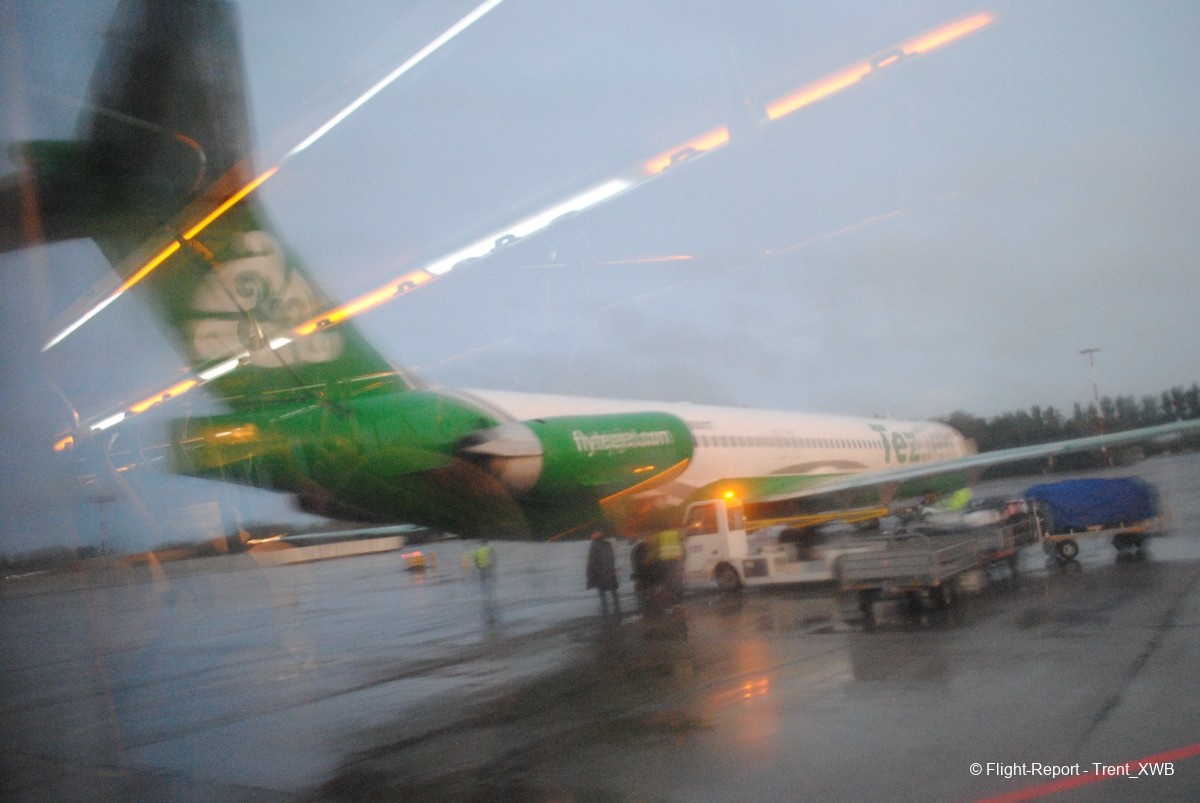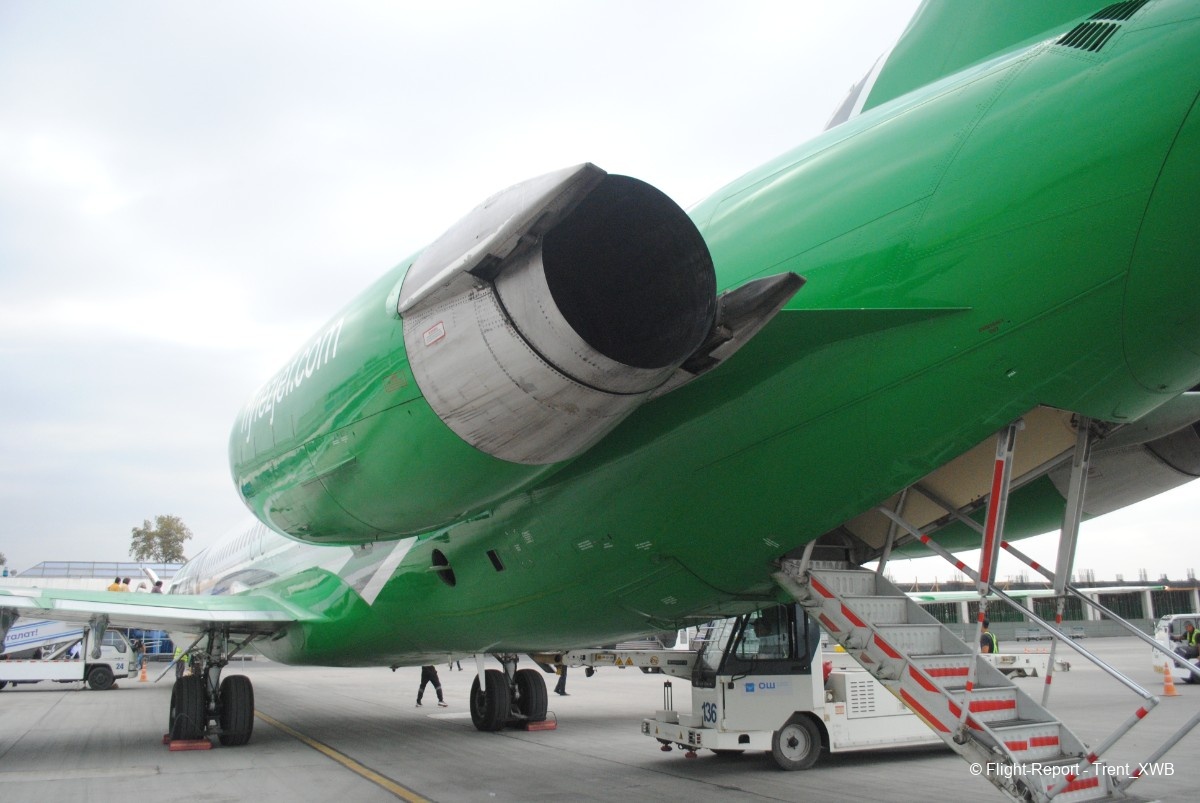 I chose to board via the tail, which has a built-in ladder. Views of the famous T-tail and tail-mounted PW JT8D-219 engines.