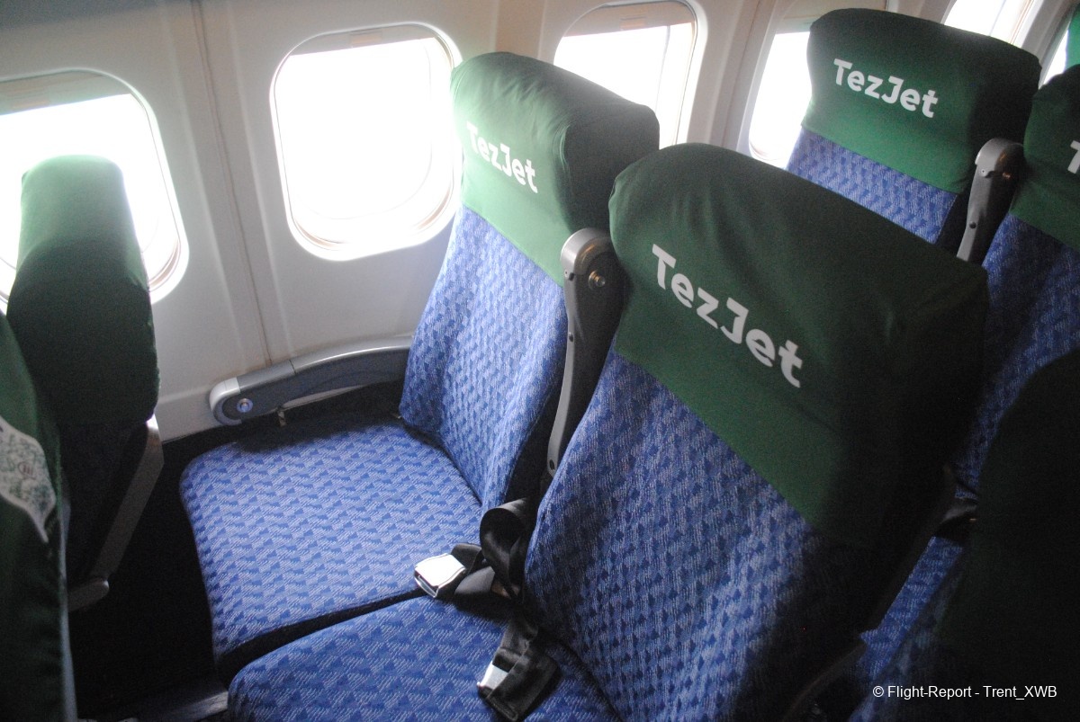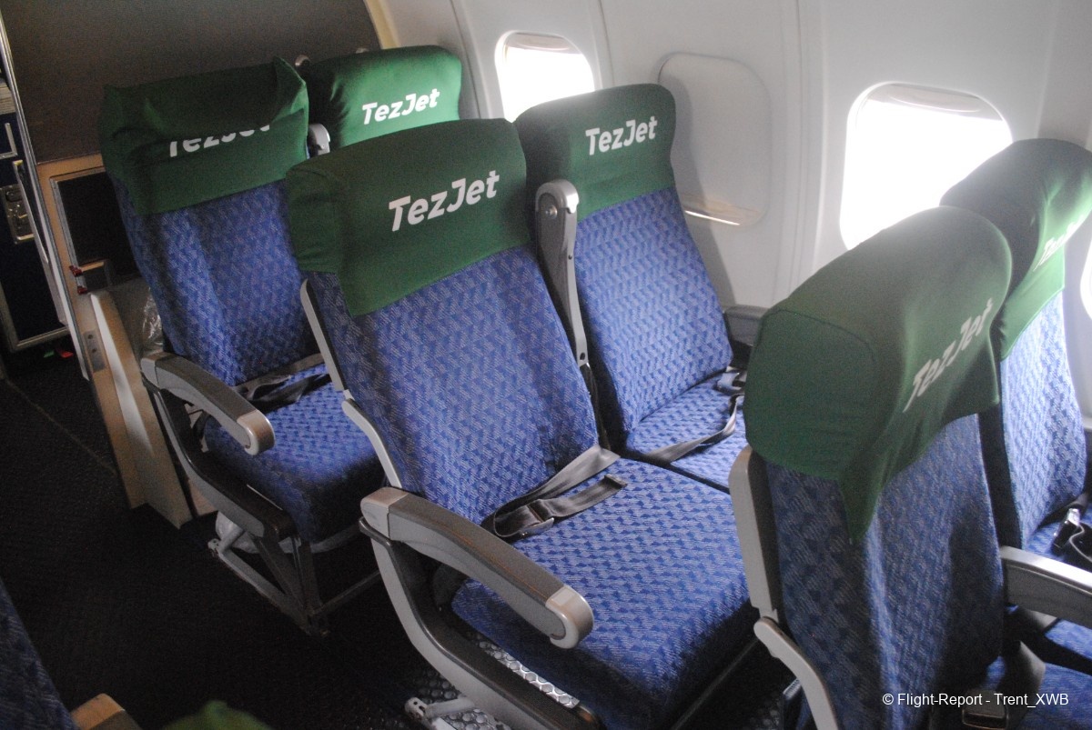 As TezJet's fleet LOPAs are not listed anywhere, I'll show a screenshot from "manage my booking" interface of the airline's website.
