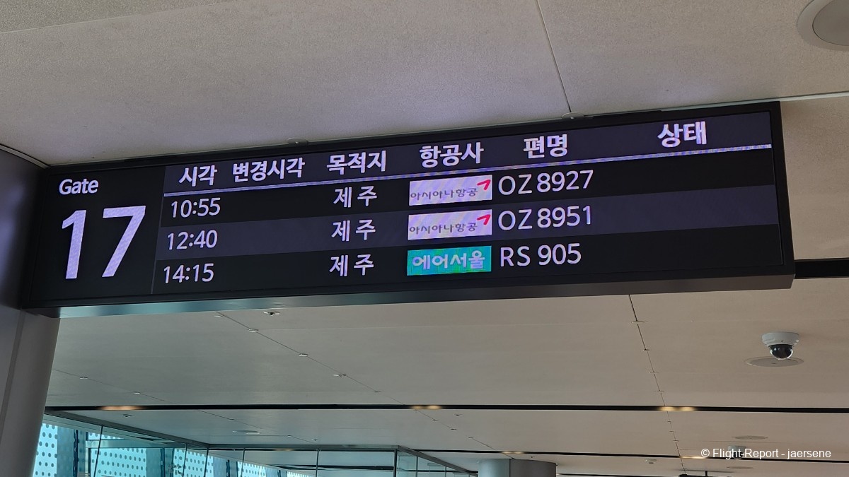 GMP has a curfew due to noise restrictions, so the departures start at 6 in the morning. You can see the busy schedule on the FIDS, covered with flights to CJU. My flight isn't shown yet, as I had arrived early. Security was a breeze, as it is a domestic flight, and I got to enjoy about 90 minutes of roaming and plane spotting.